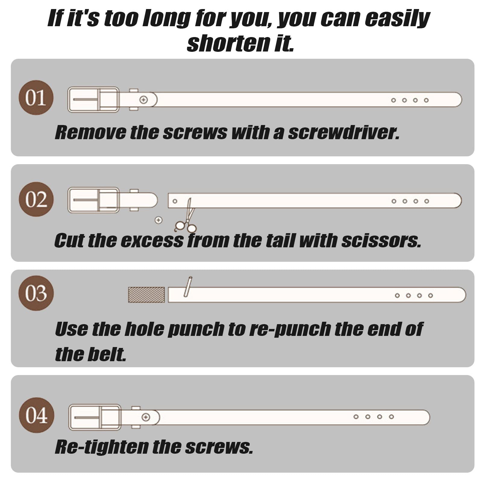 ❤️ Dimensions: The full length of the belt is 110cm/43.31", suitable for women with a waist of 31"-35", if your waist is smaller, you can use a hole punch to increase the hole. Belt Width:3.5cm/1.35".Belt Buckle:4.5 cm/1.77"W, 6.5cm/2.56"L
