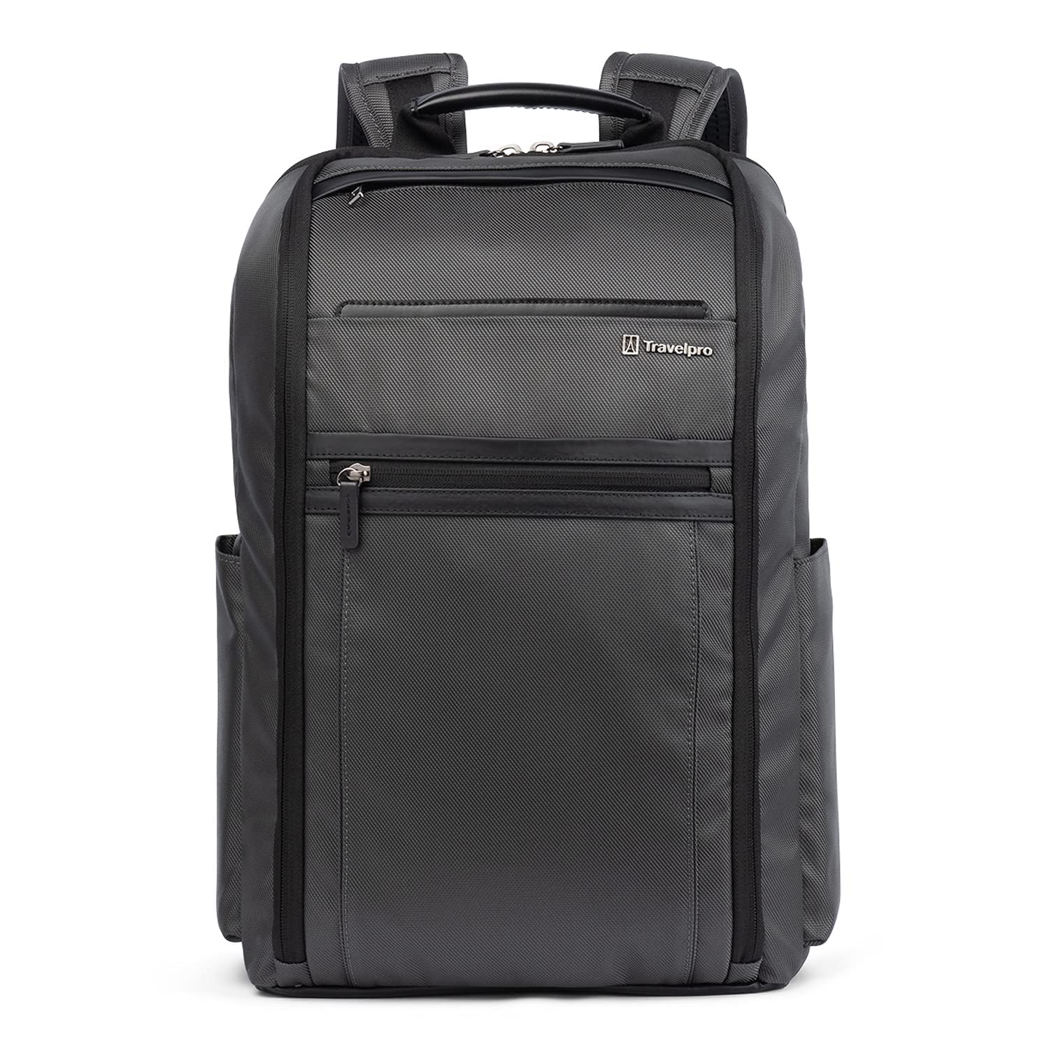 DescriptionBanish bulk. With its sleek styling, superior durability and built-in organization, the highly-durable Travelpro® Crew™ Executive Choice™ 3 Slim Carry on Backpack gives you the freedom to roam while keeping everything you need close at hand. Crafted with high-quality, stain-resistant nylon fabric and leather accents, this Slim Backpack for airplane travel makes ultimate use of its pared down profile with separate padded tablet and laptop sleeves plus loads of pockets inside and out. This backpack luggage for travel has special features that include a tricot-lined, exterior top-zip sunglass pocket and Travelpro® QuickSlip™ front pocket with magnetic closure, perfect for cellphone storage on the run. A Travelpro® ID TheftBlock™ pocket keeps credit cards and passports protected against loss and identity theft, and exterior, lie-flat side pockets expand to hold water bottles or an umbrella makes it the best backpack suitcase for travel. When it’s time to move, the padded airflow back panel and adjustable, padded shoulder straps provide superior comfort and a dedicated strap pocket for earbud storage. For hands-free mobility, this backpack with luggage strap fits around the extension handle of any Rollaboard® or spinner suitcase. This carry on backpack for women or backpack for men travel is backed by our Built For a Lifetime Limited Warranty with Trusted Companion Promise that even covers damage caused by airlines or other common carriers for the first year of the lifetime warranty.