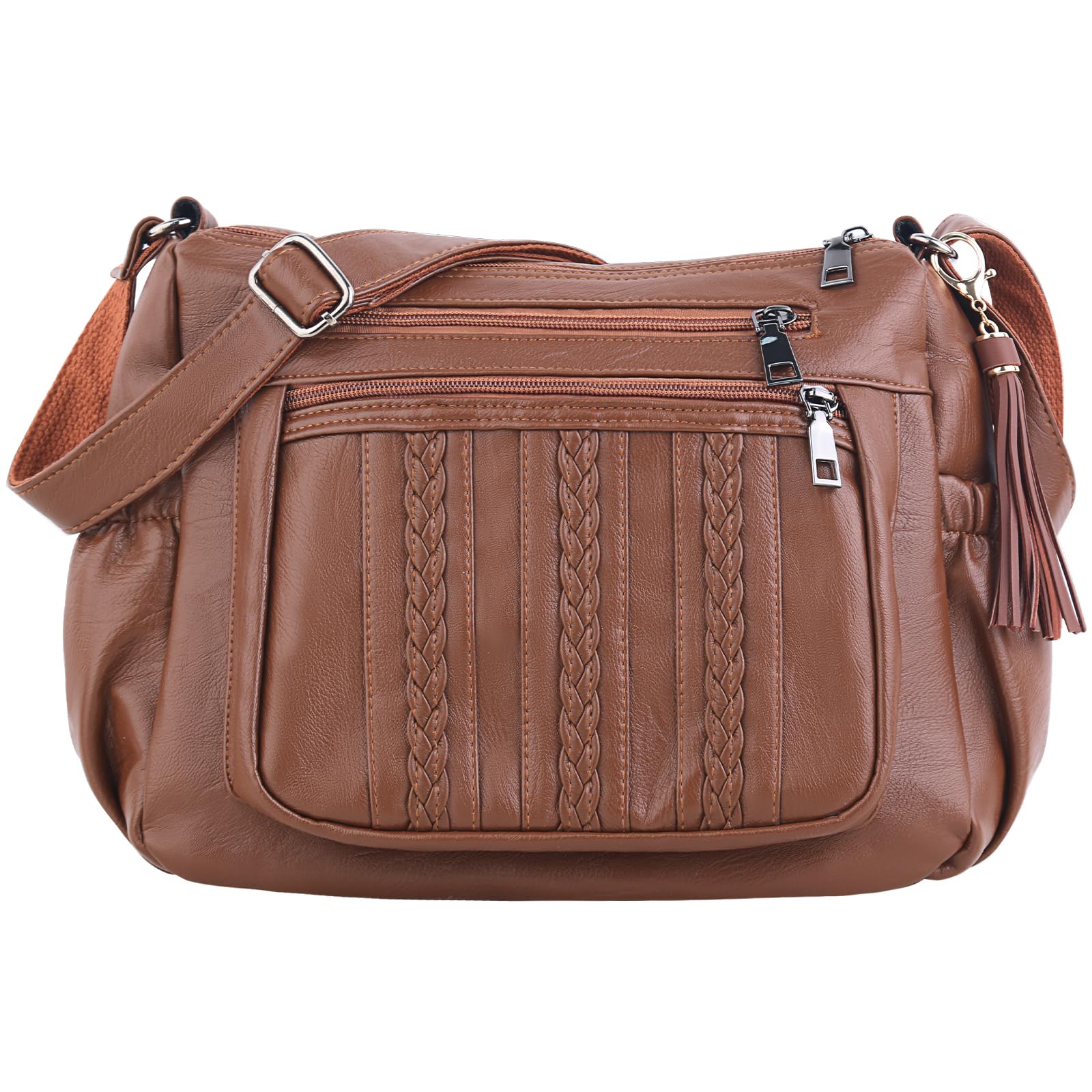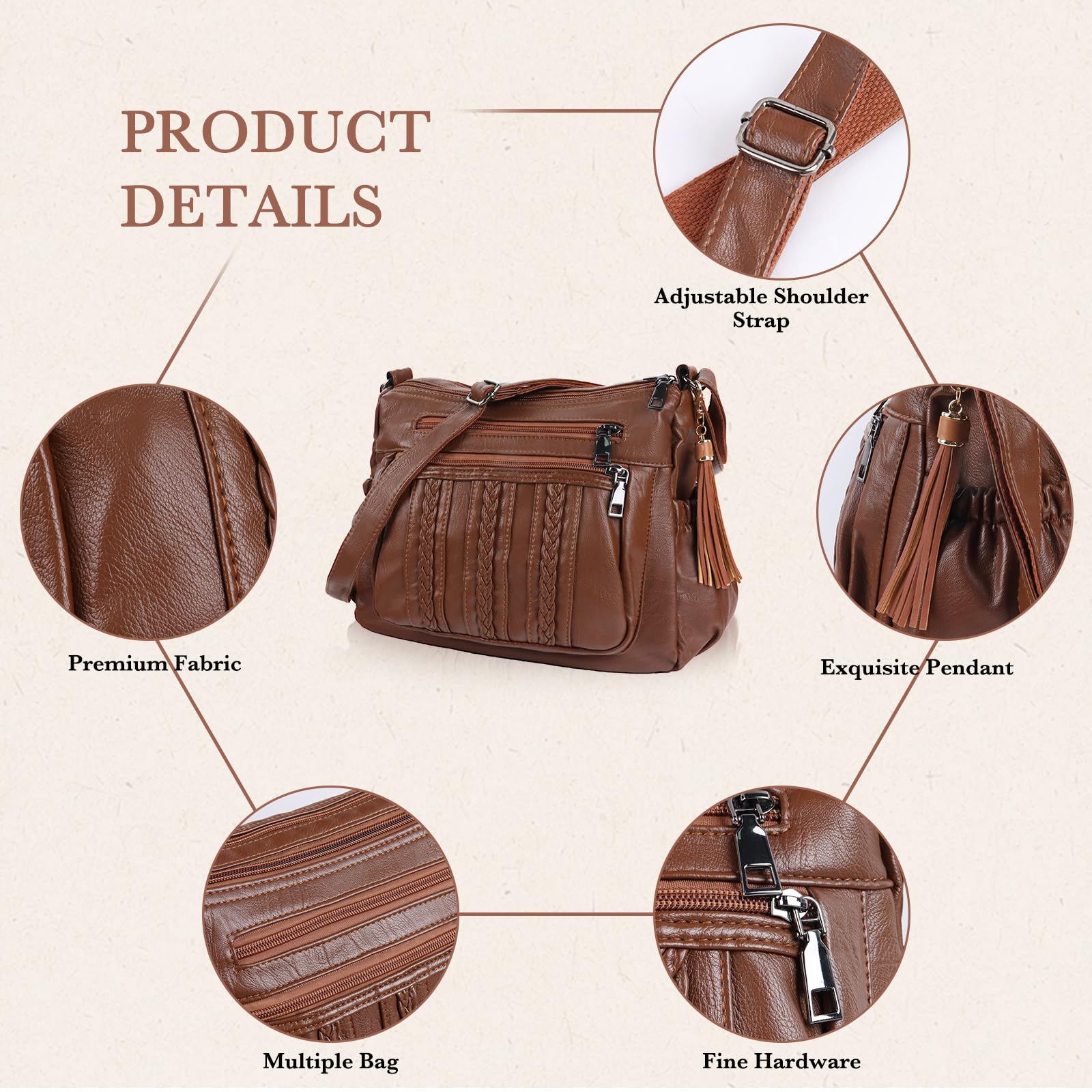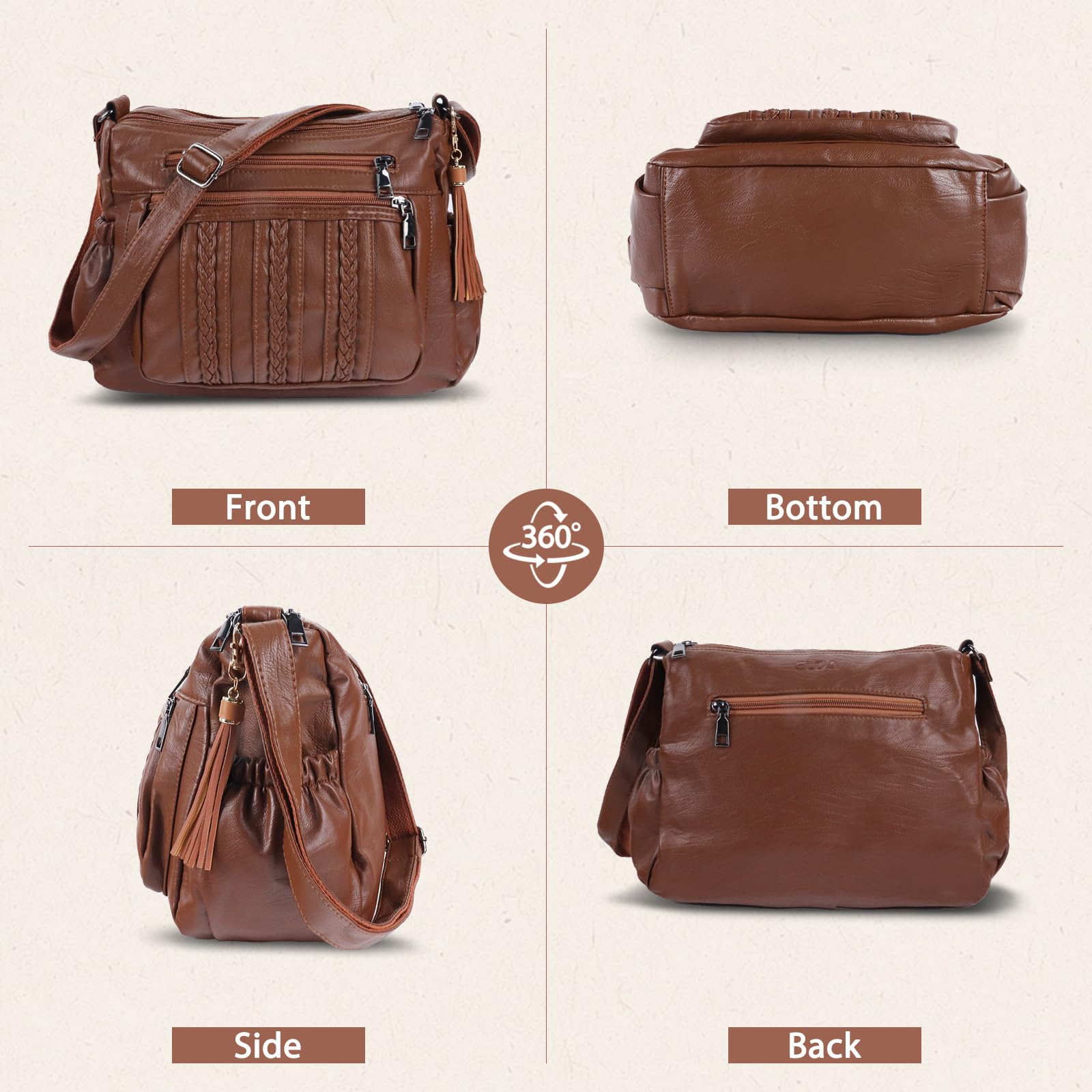 Check out our High-quality PU leather Crossbody Bag for Women! Made with soft and comfortable washed PU leather, this bag is lightweight and easy to carry. Its multi-zipper closure and multi-pocket design make it perfect for organizing your belongings. Plus, it comes with an adjustable shoulder strap and a spacious compartment that can fit all your essentials, including an iPad mini, cell phone, perfume, lipsticks, glasses, watch, and keys.