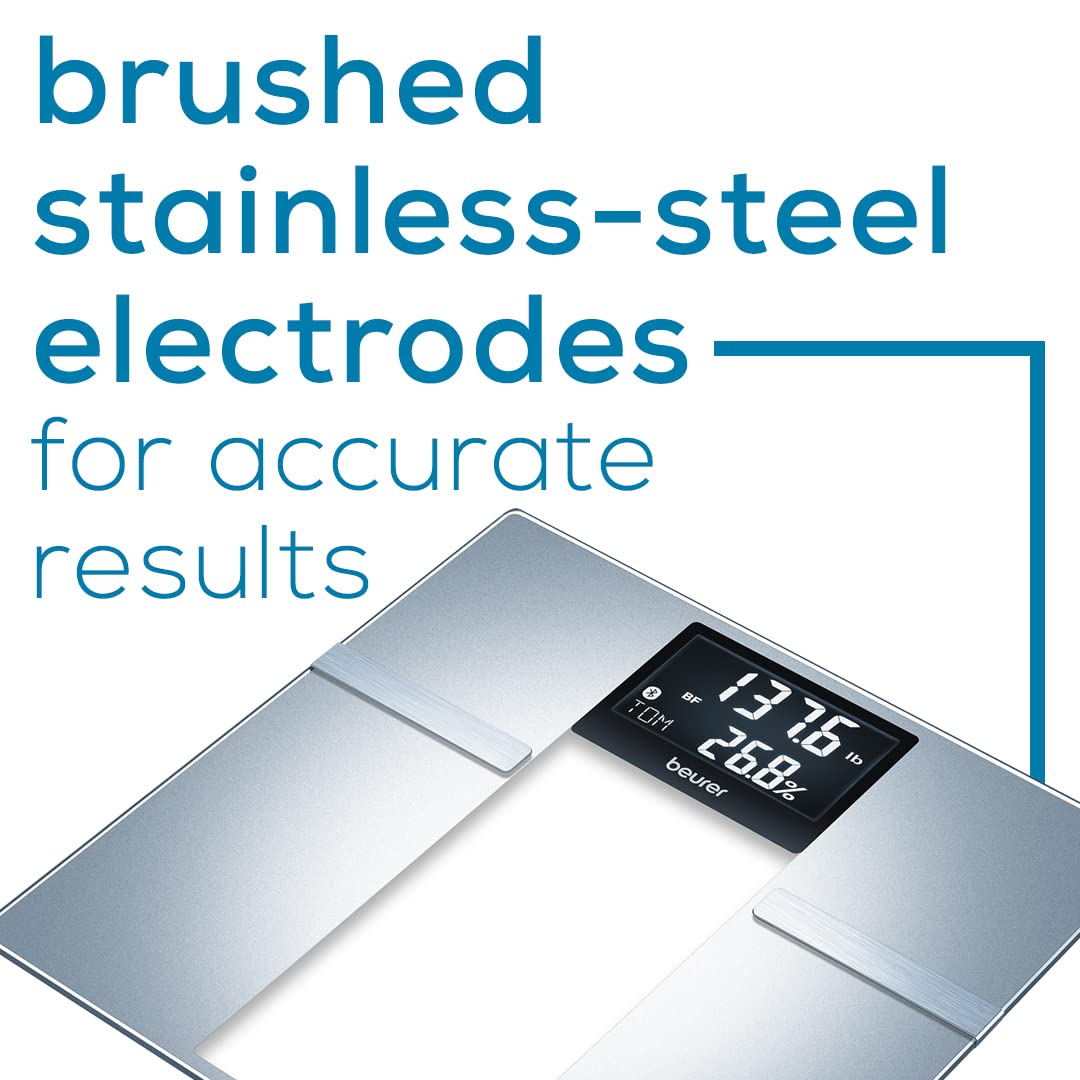• CONVENIENT BODY WEIGHT SCALE: This German engineered weighing scale features narrow brushed stainless-steel electrodes for accurate results, an easy-to-read LCD display, switch-on technology, automatic switch-off & overload indicator. Capacity: 400 lbs - with 0.2 lbs increments