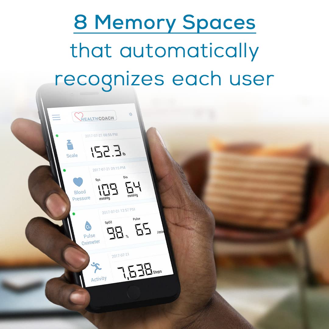 • USER RECOGNITION: 1 scale - 8 users. The smart scale has memory spaces for 8 people and automatically recognizes each user
