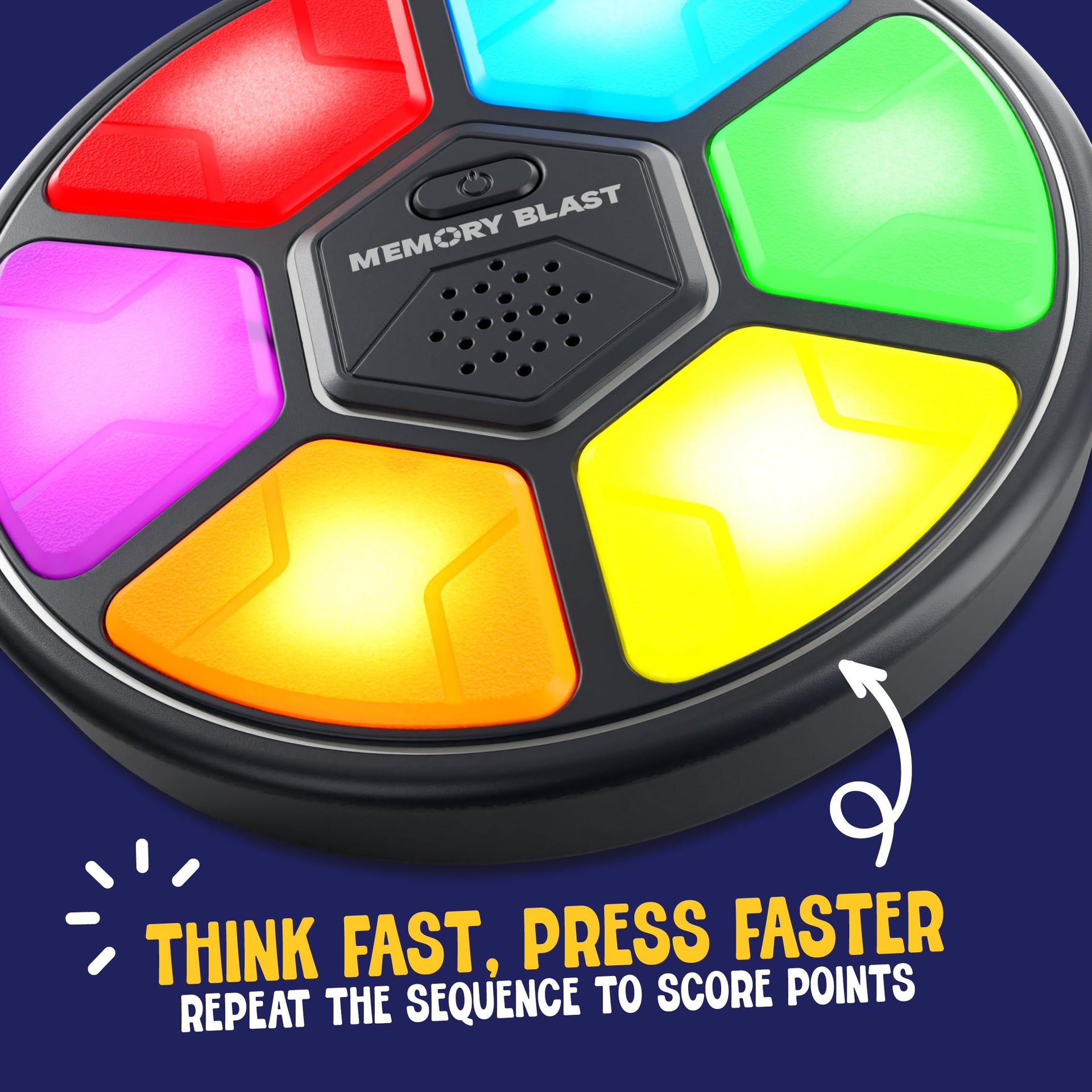 • THINK FAST, PRESS FASTER: The Memory Blast boosts focus, strengthens recall, and builds pattern recognition - all through fast-paced, screen-free play packed with flashing lights and sound effects that keep kids fully engaged while having a blast.