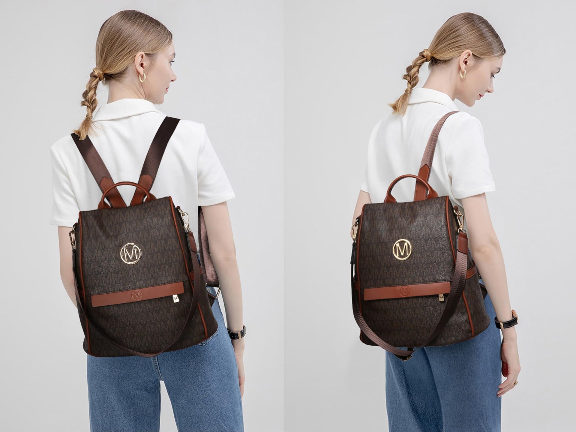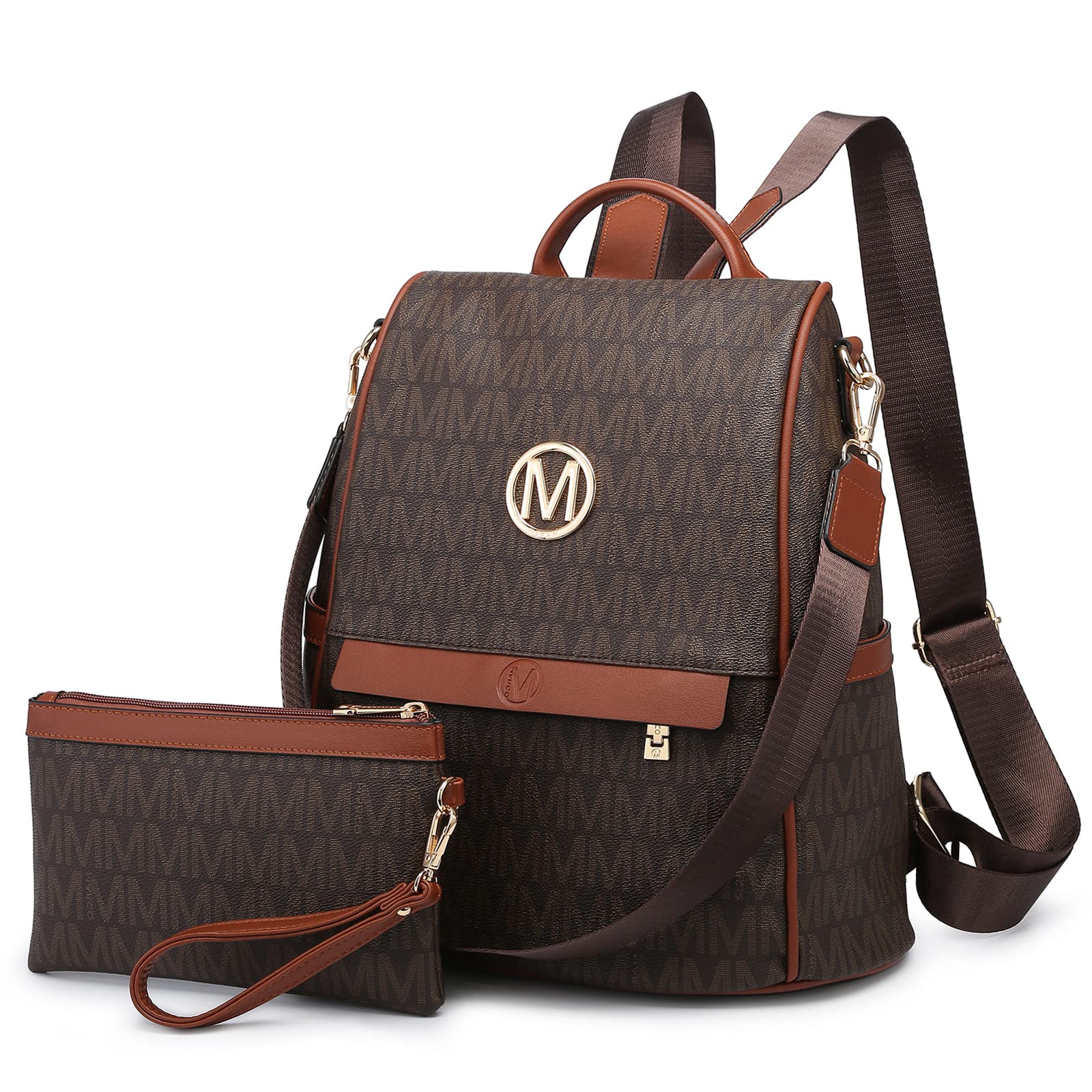 MKP Women Fashion Backpack Purse Multi Pockets Signature Anti-Theft Rucksack
