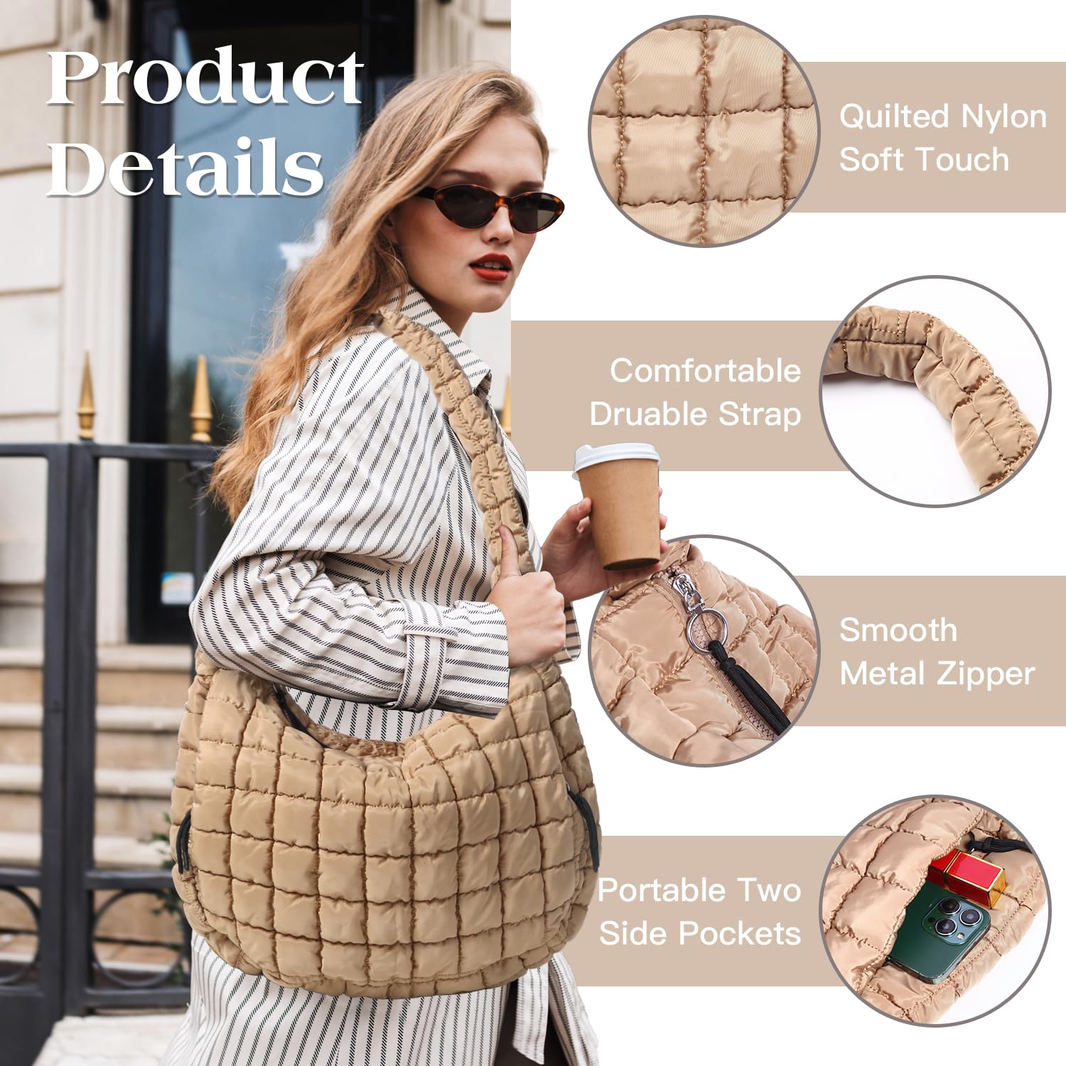 - 【Muti-Pockets Design】: Say goodbye to rummaging through your bag! The upgraded puffer tote bag features multiple zippered pockets to keep your essentials secure and organized. With a zippered inner pocket for valuables and two side pockets for easy access to your phone and headphones