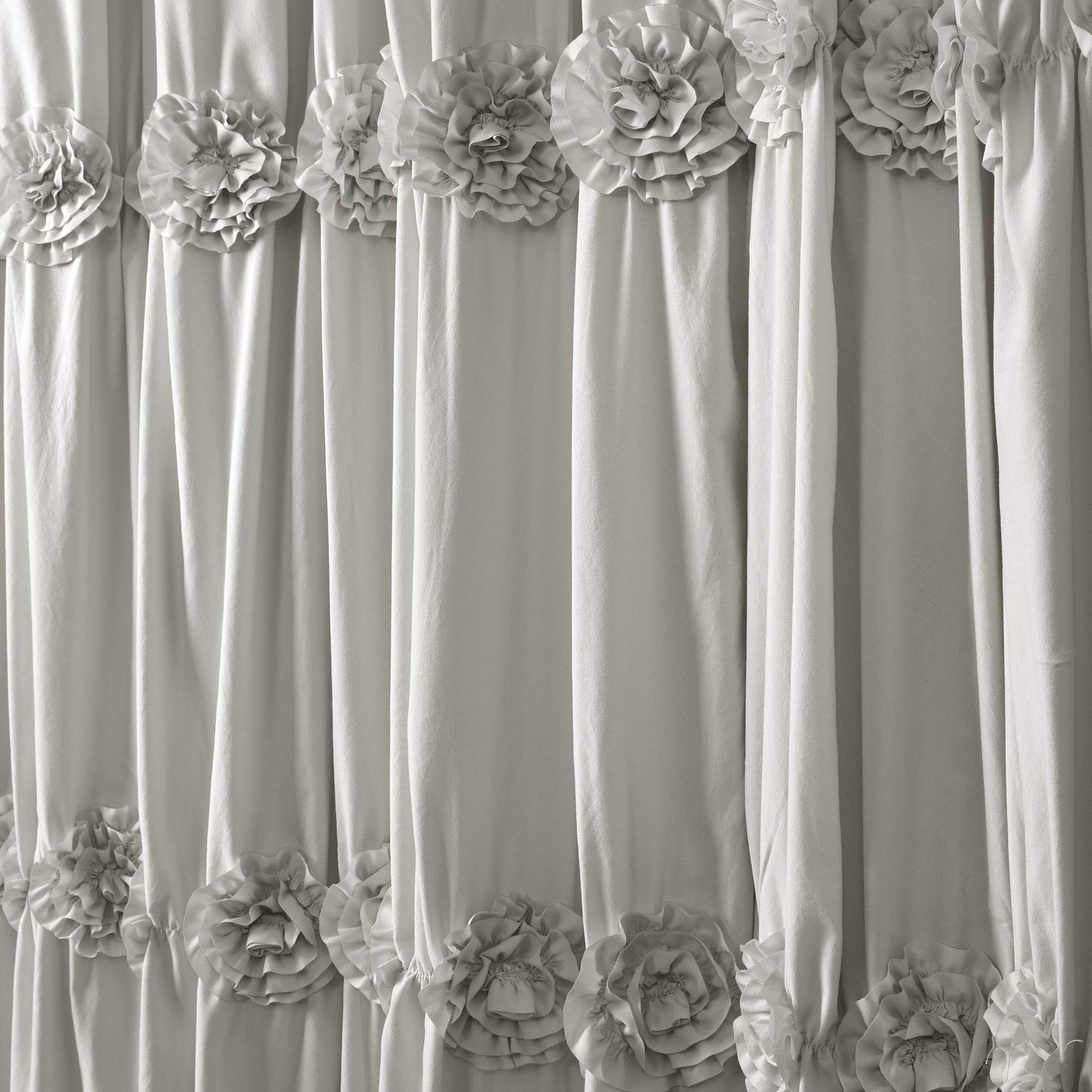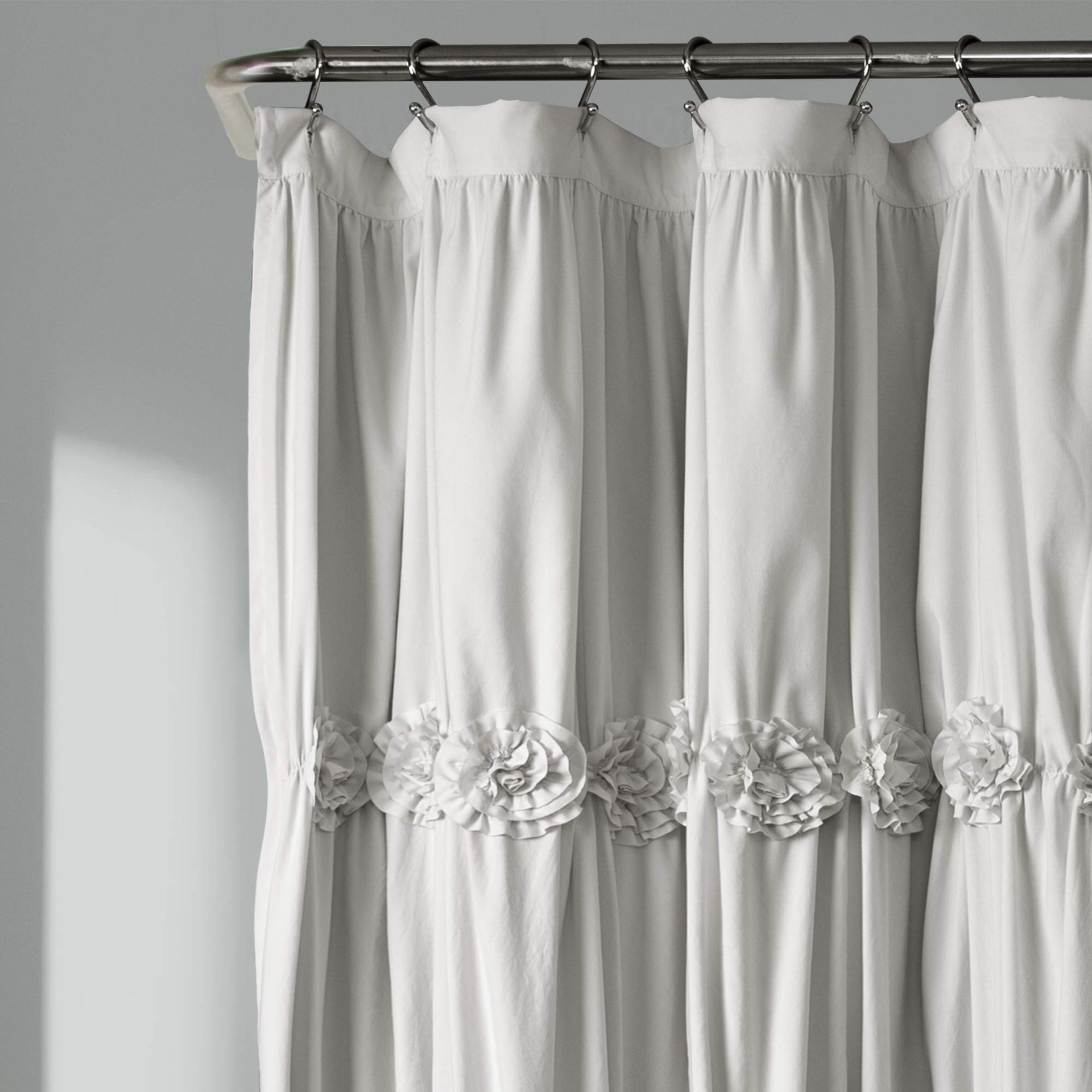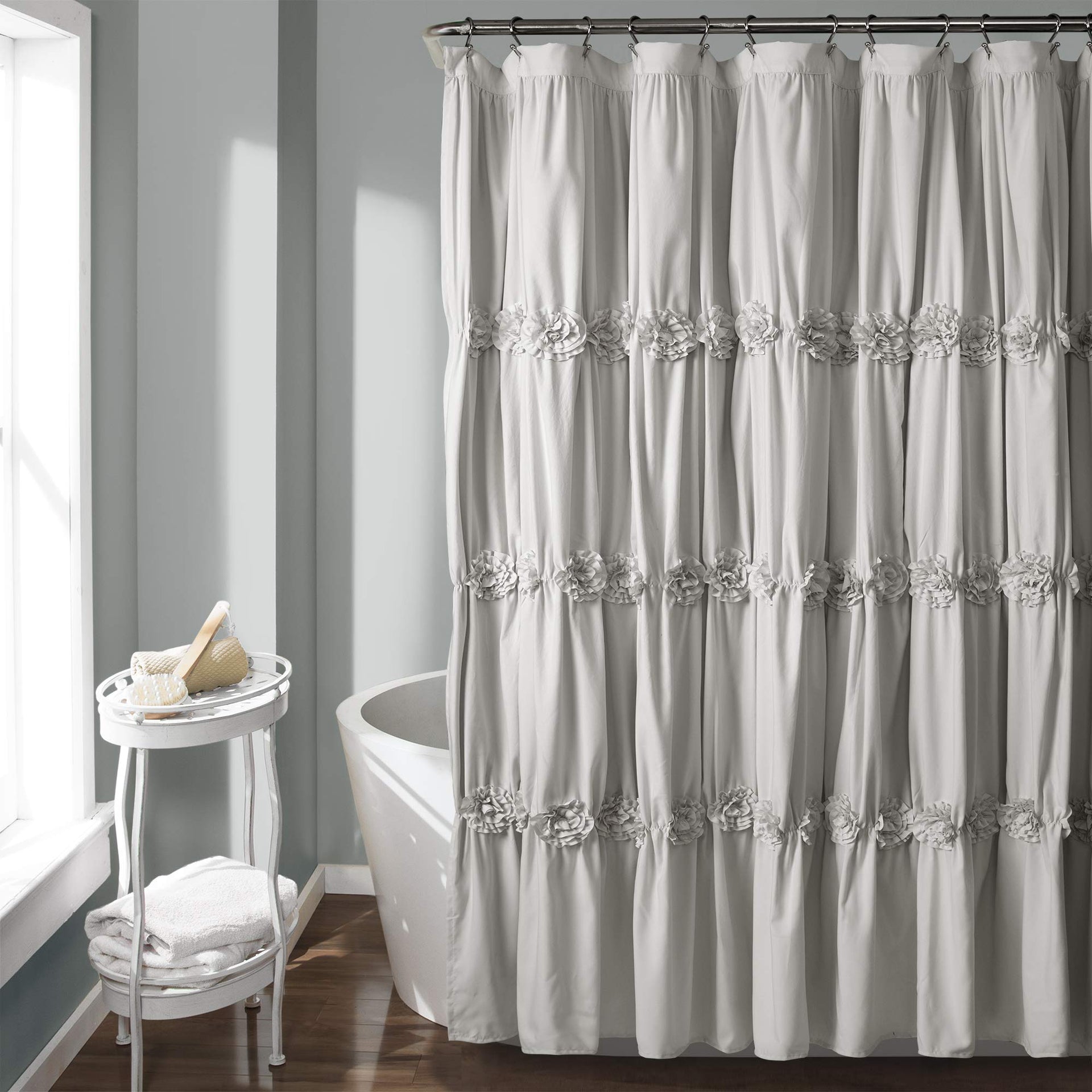 - Lush Decor Darla Ruched Floral Bathroom Shower Curtain, 72” x 72”, Light Gray