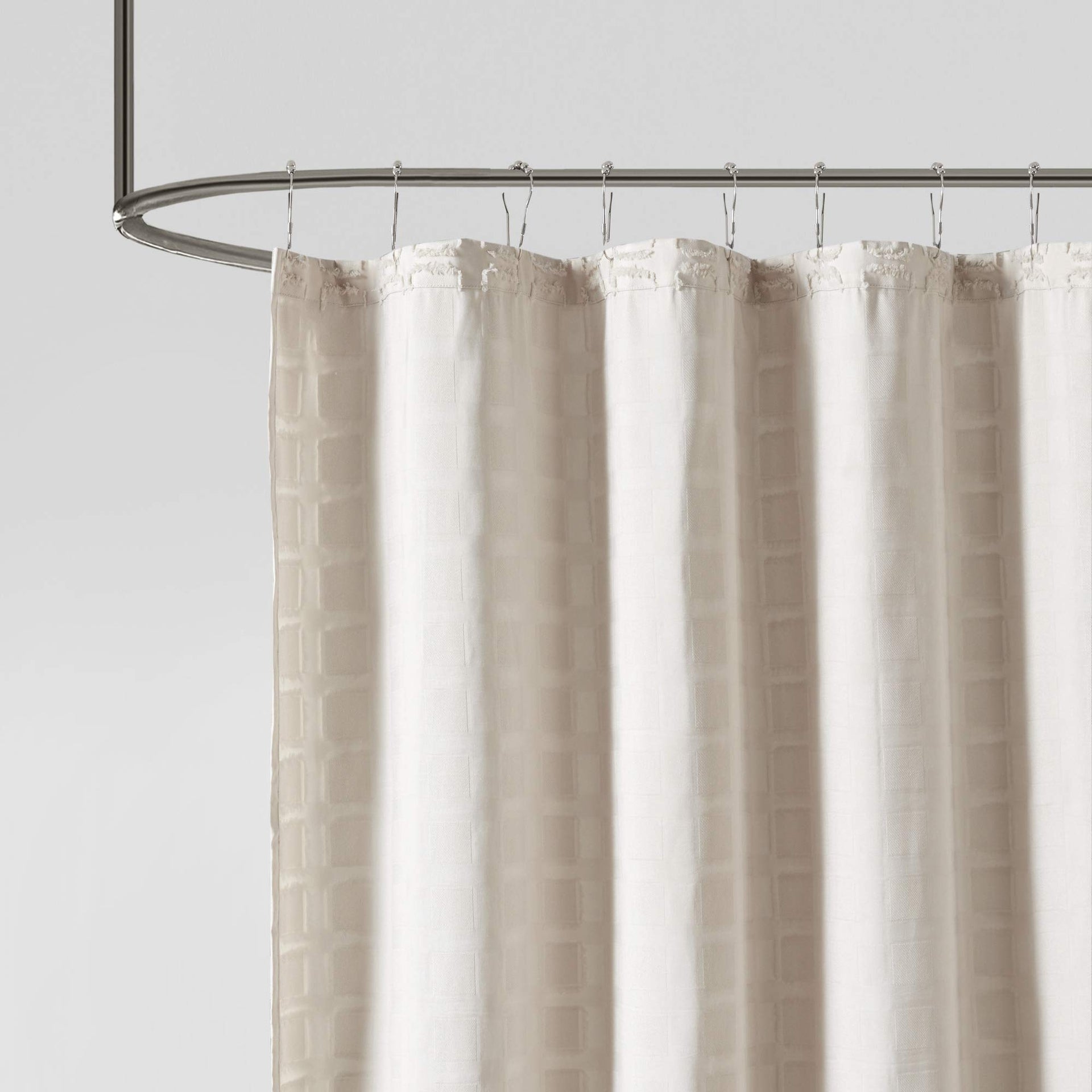 - Madison Park Metro Bathroom Shower, Textured Woven Clipped Design Modern Mid-Century Privacy Bath Fabric Curtains, 72"x72", Sand