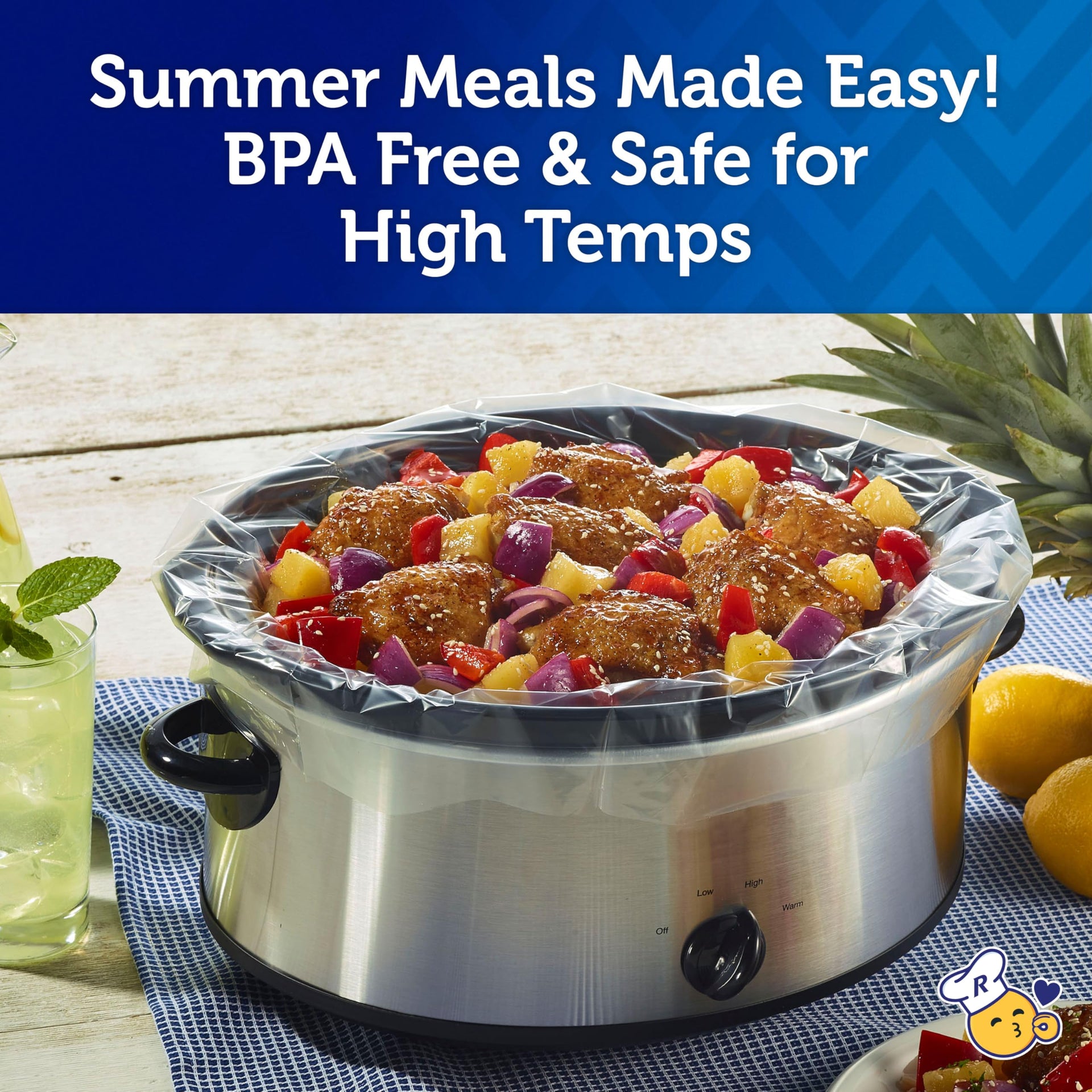 Details: Make memorable meals with Reynolds Kitchens Slow Cooker Liners, and save time on cleanup. Grab these slow cooker bags for slow cooking without dealing with stubborn, stuck-on messes. Each slow cooker bag measures 13 x 21 inches to fit 1- to 3-quart round and oval slow cookers, and is made with a BPA-free heat resistant (up to 400 degrees Fahrenheit) nylon-blend construction. Spend more time with your loved ones and less time in the kitchen with these FDA-compliant, food-safe Reynolds Kitchens Slow Cooker Liners.