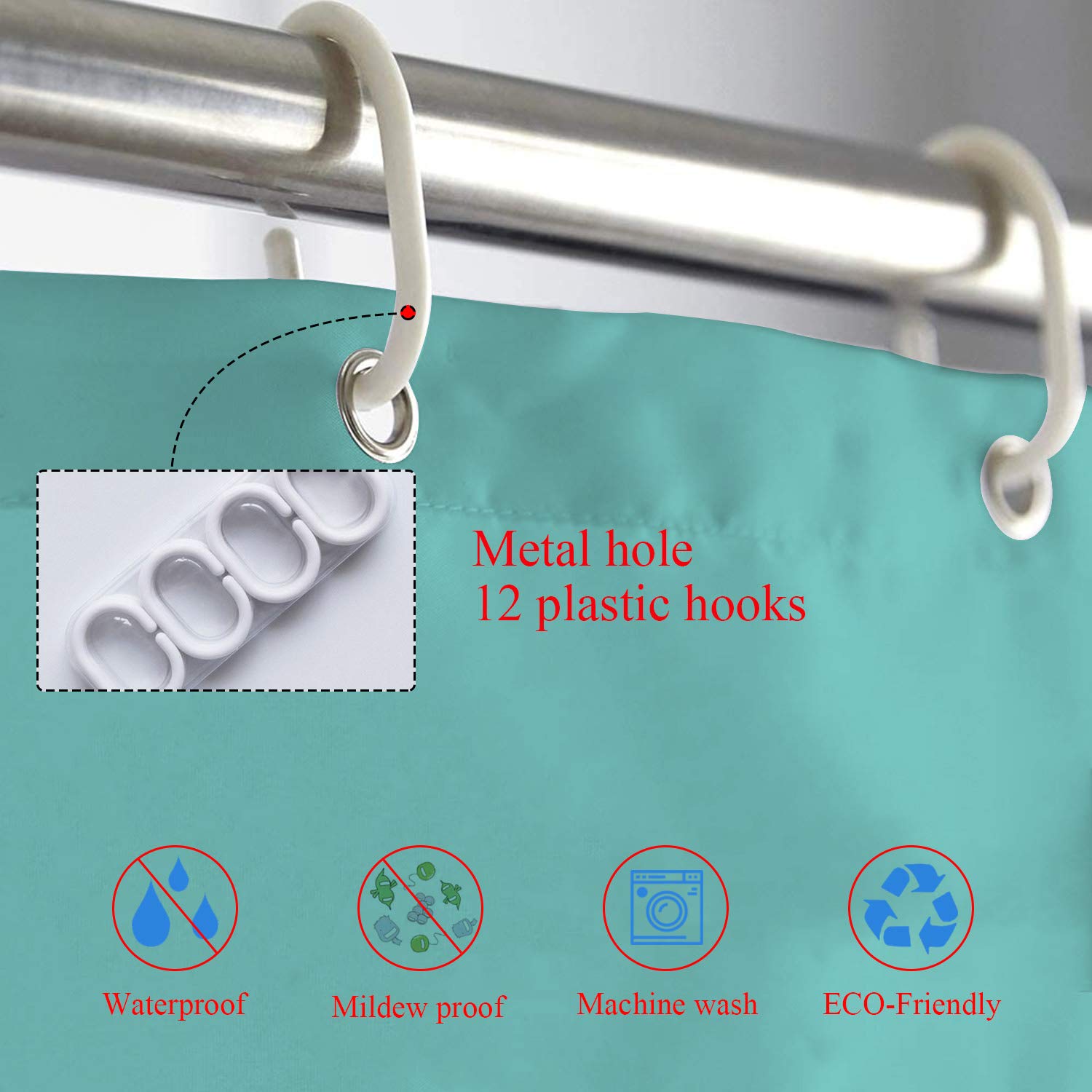 Shrahala White Elegant Turquoise Decorative Shower Curtain, Elegant Turquoise Christmas Shower Curtain for Shower Stall Bathtubs Bathroom Decor…