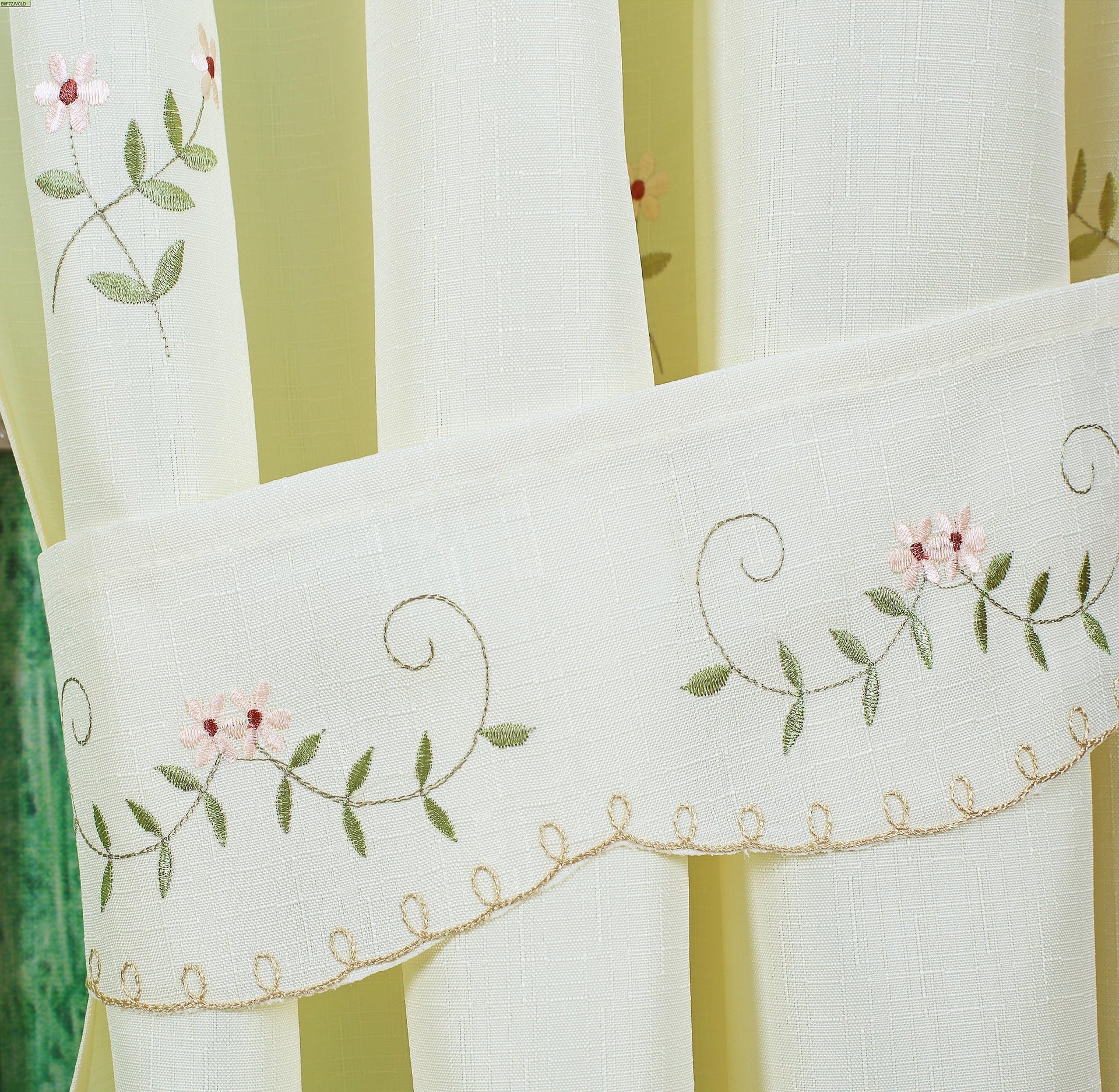 Petit daisy floral embroidered along the scallop embellished bottom and side, offering a true window view for your country home or cottage house. This Forget-Me-Not collection of curtains make your statement for any room of the house, simply pick and create your styles for every window décor. Perfect light filtering, and good privacy with this non-see-through textured fabric. Machine washable, easy care.