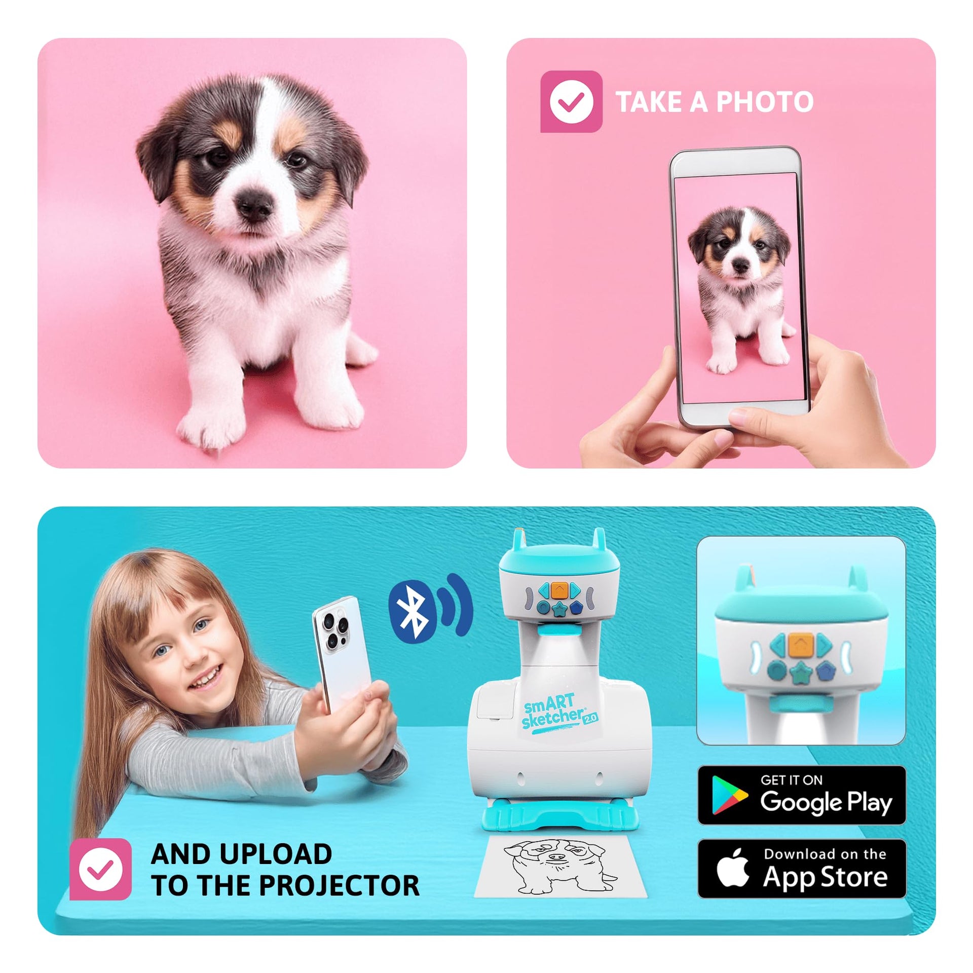 - APP ENABLED FOR ENDLESS FUN: Seamlessly connect to smartphones and tablets via Bluetooth, accessing the app provides additional content, personalized drawings, and interactive tutorials, ensuring a dynamic and engaging drawing experience for children of all ages. Snap a pic of anything, edit in the app, project it to trace and sketch.
