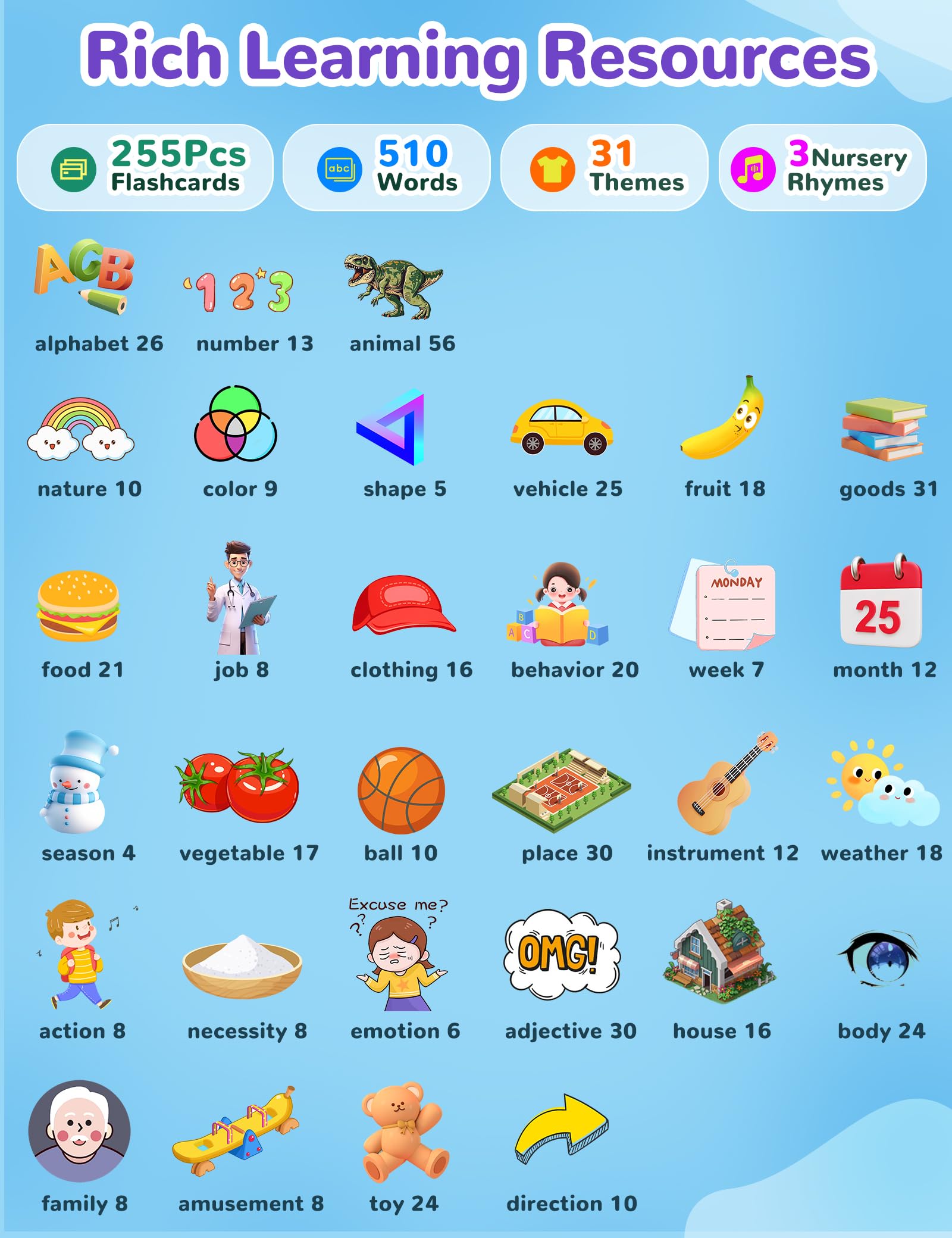 Spanish & English Talking Flash Cards – 510 Bilingual Sight Words for Toddlers, Autism Speech Therapy & Educational Vocabulary Toy