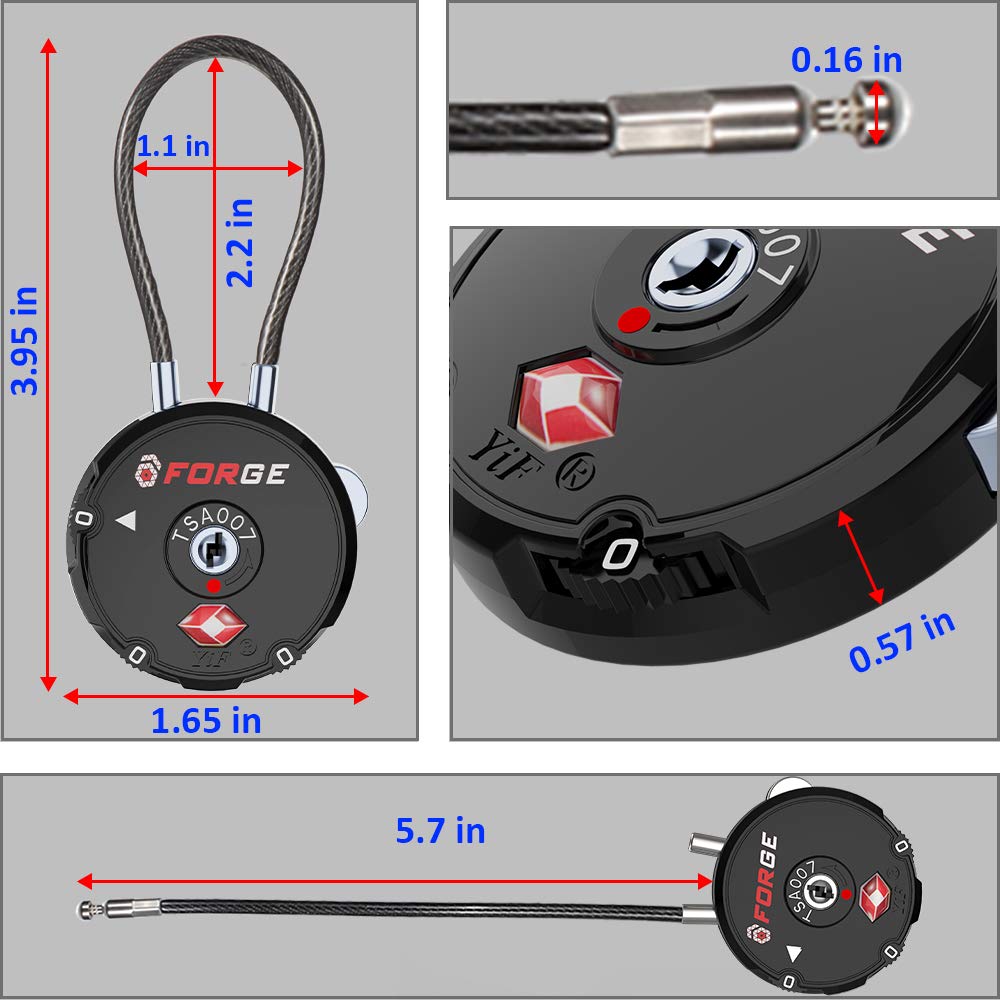 - MOST DURABLE TSA RECOGNIZED AND ACCEPTED LUGGAGE LOCK. Forge locks are designed from the ground up to be the toughest luggage locks around. Our special alloy lock bodies, tightly braided and sheathed steel cables, hardened steel cable lock ends as well as patented internal mechanisms can take such a pounding that we back our product up with an unconditional lifetime guarantee. If you can find a way to break these locks, we will gladly refund or replace them.
