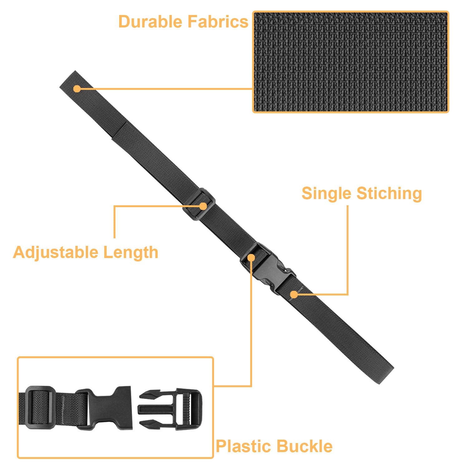 - Strap with Plastic Buckle. Stronger, wear resistant and more sturdy. Package includes: 4 Packing Straps.