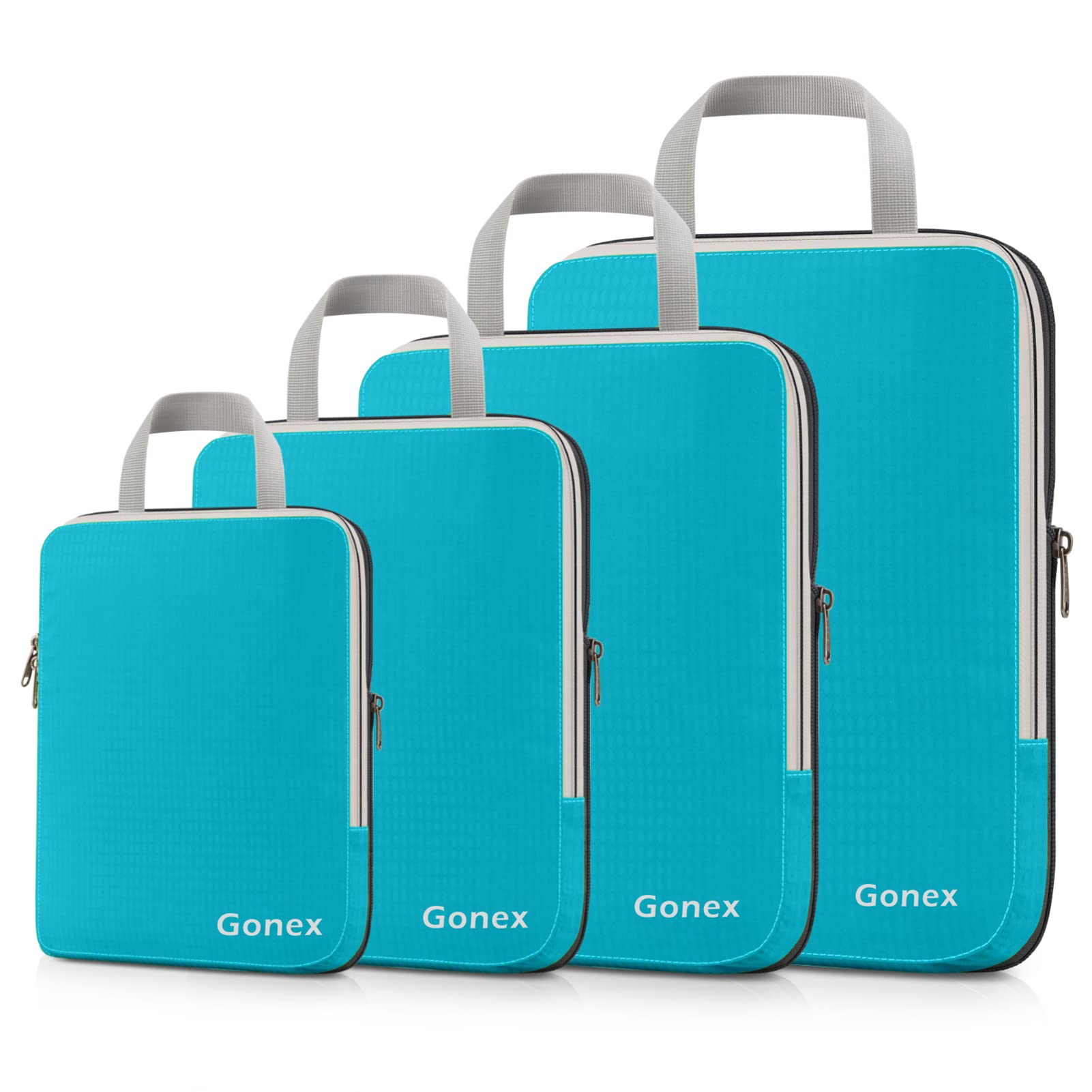 Gonex Compression Packing Cubes, 4pcs Expandable Storage Travel Luggage Bags Organizers (Blue)