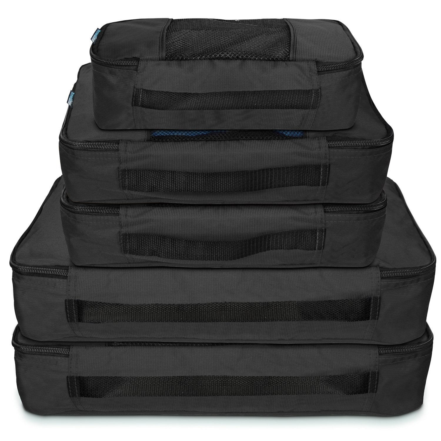 - PACKING MADE EASY – This 5 piece travel organizer set (1 small, 2 medium and 2 large packing cubes) compartmentalizes similar size items in their own “small drawers” to streamline packing and more efficiently utilize interior luggage space.