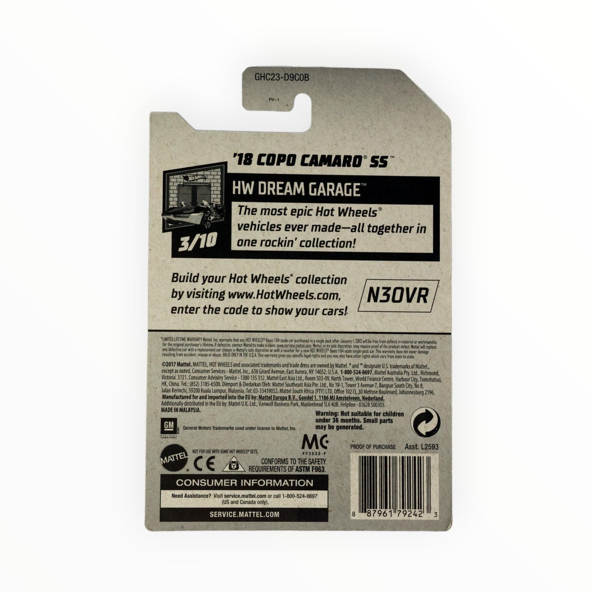 Hot Wheels 2020 Hw Dream Garage '18 Copo Camaro SS, 20/250 Silver