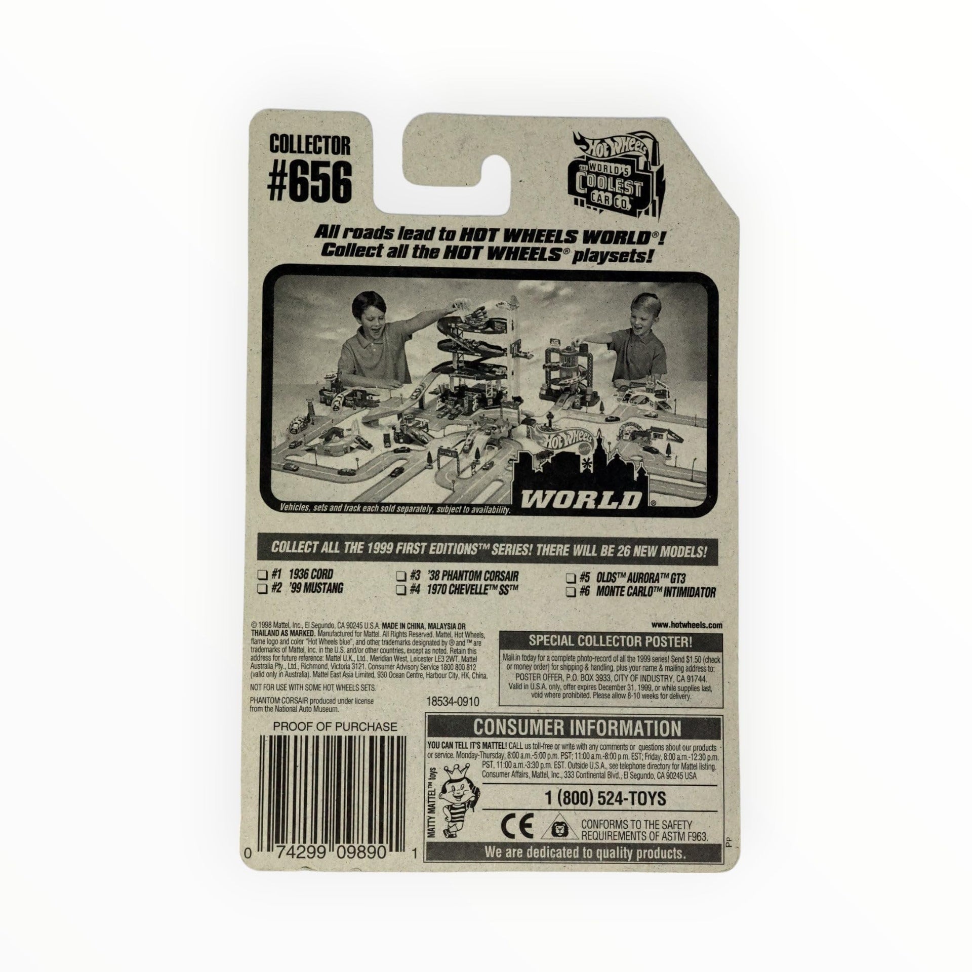 - HOT Wheels Black '38 Phantom Corsair #656 1999 Gray interior First Editions Gray Logo White Wall 5 Spokes