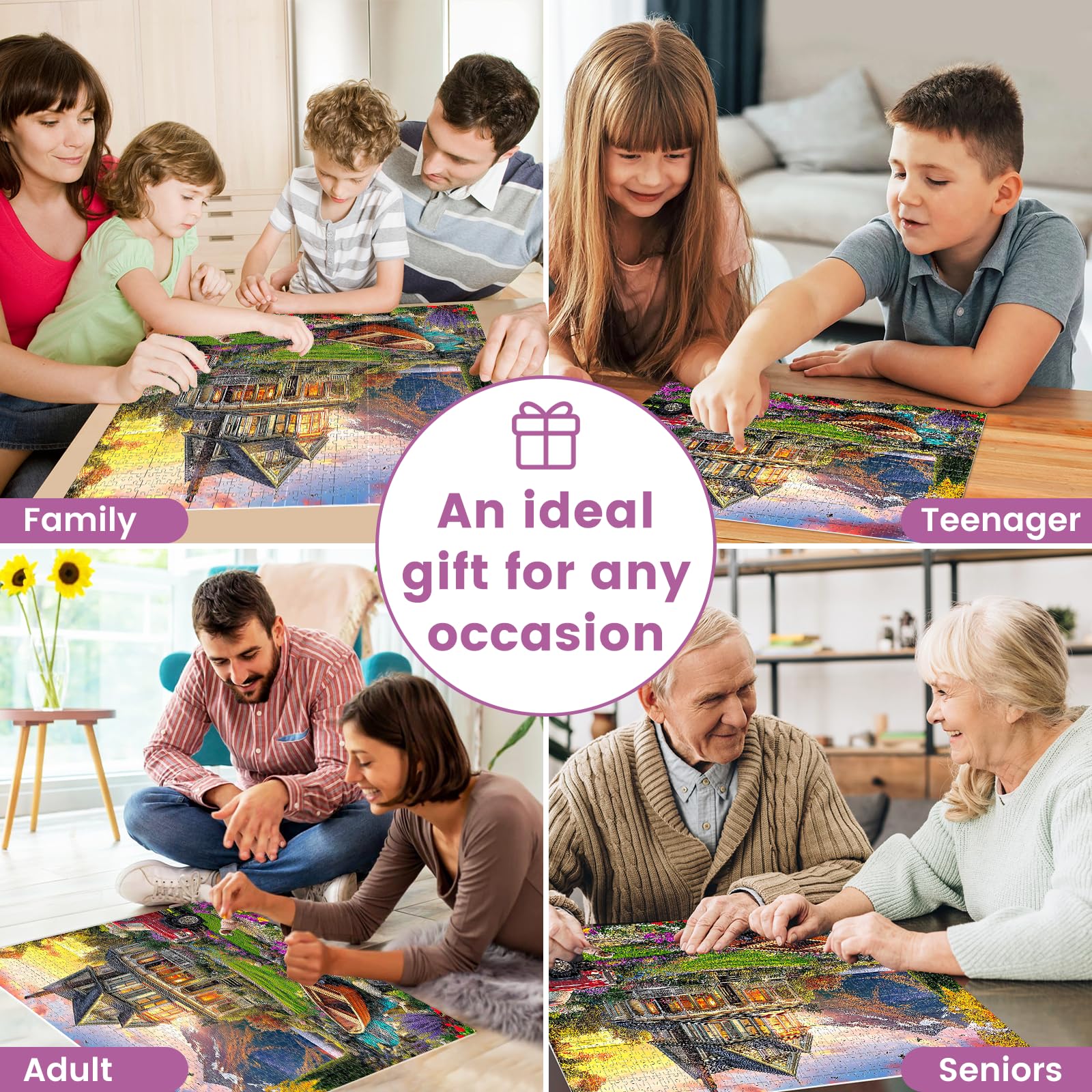 - [Perfect Gift]: This 1000 piece puzzles for adults large piece is perfect for both adults and kids. It makes a wonderful gift for friends, family, lovers, colleagues, and puzzle enthusiasts, making it ideal for Christmas, birthdays,graduations, and Thanksgiving