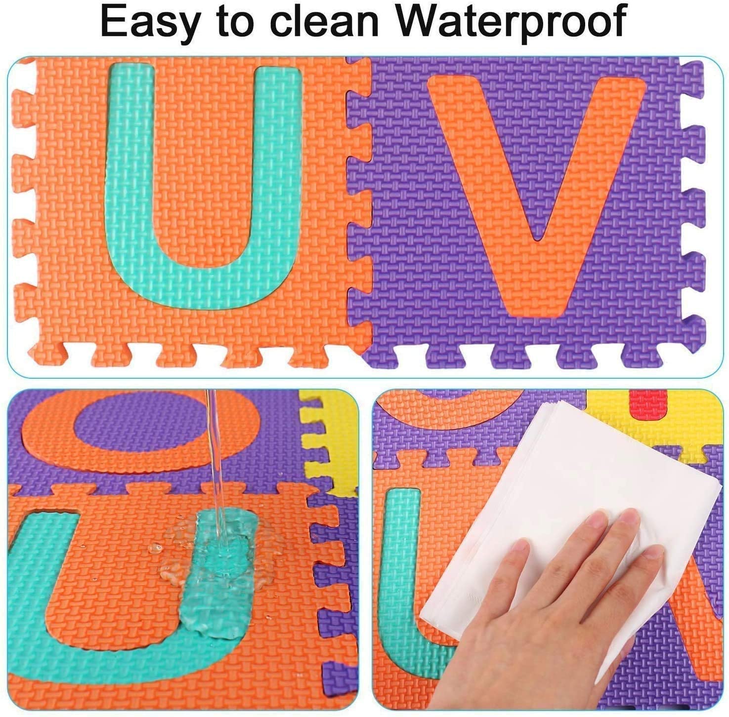 - 【Multi-Color Play Mat】Non-toxic, odorless and waterproof. Easy to clean with damp cloth & mild soap. Colorful puzzle pieces grab kids’ attention and spark their interest, develop their hand-eye coordination and gross motor skills. Interlocking feature and lightweight make it very simple to assemble.