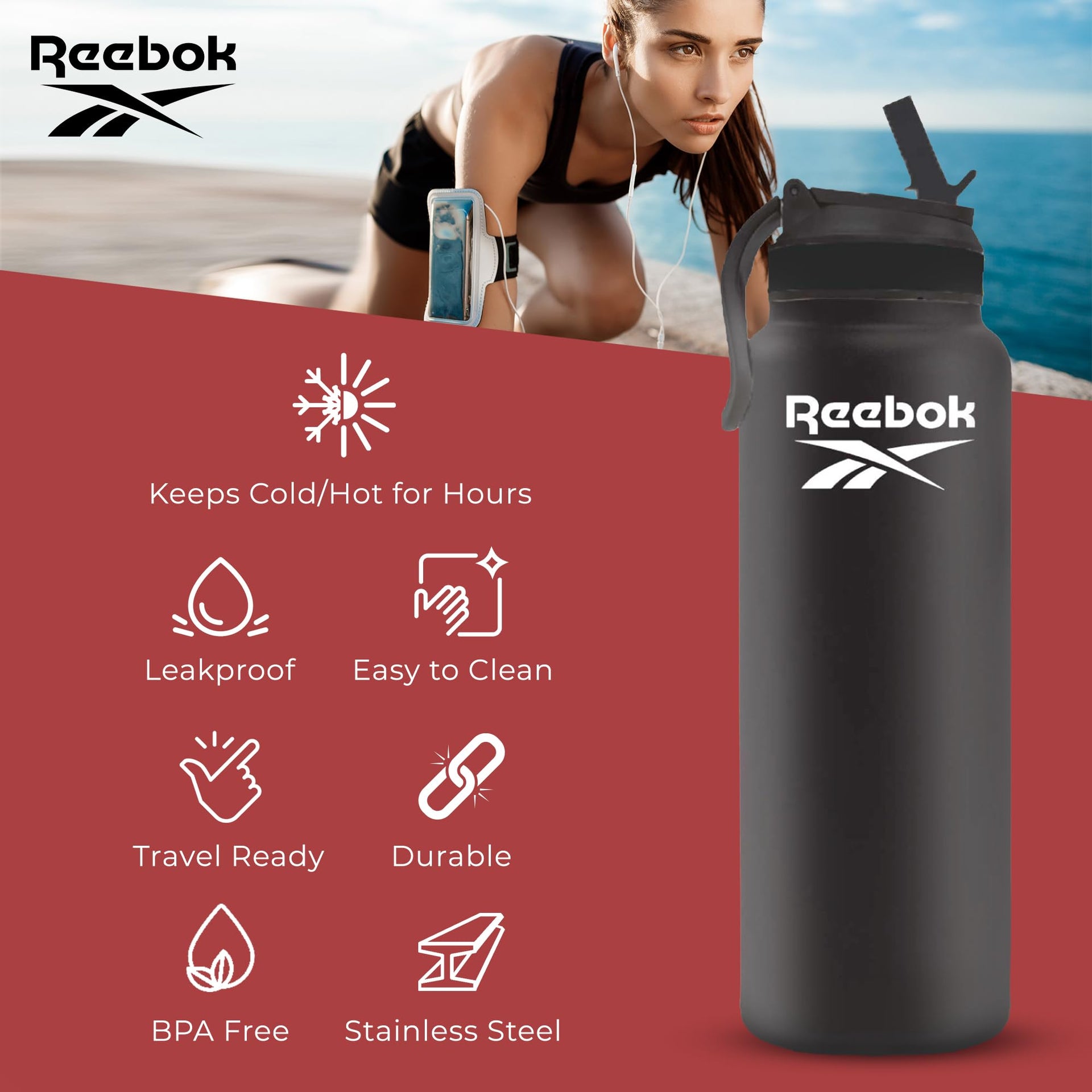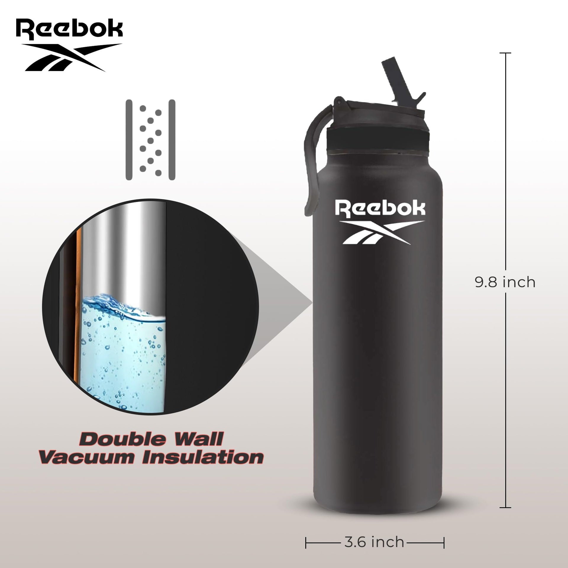 Reebok Stainless Steel Water Bottle With Lifestyle Design - Insulated Water Bottle 32 oz With Straw - Double Wall Vacuum Insulated Sports Water