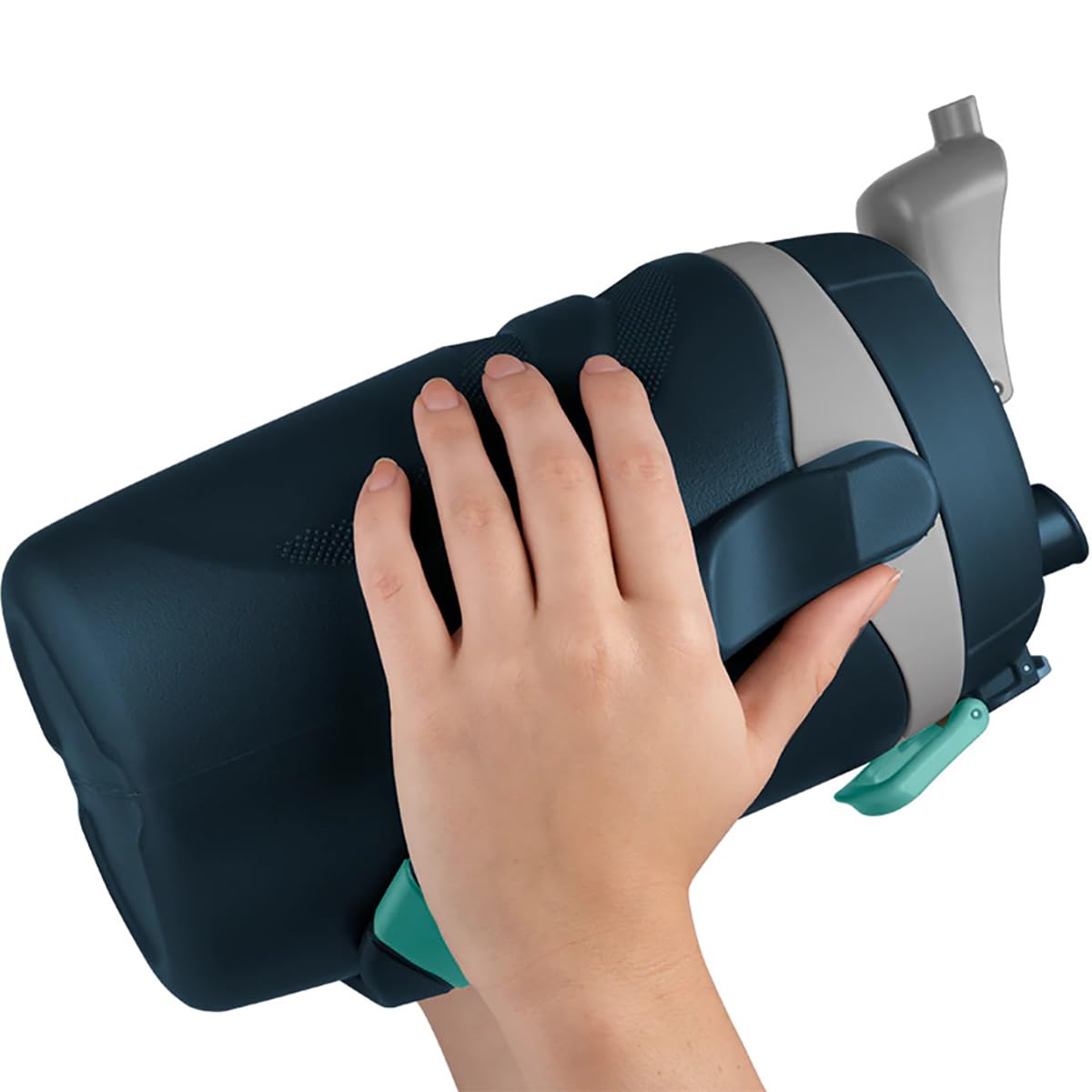 The Thermos 64 oz. Foam Insulated Flip-Up Lid Hydration Water Bottle is the ultimate hydration bottle with an impressive capacity to hold your favorite cold drink. Sip it, chug it, and swig it all day long without needing to refill all the time. The double wall foam insulation keeps your drinks cold for up to 12 hours. You can operate the push button lid with just one hand, making it easier than ever for you to quench your thirst quickly. The lid locks for secure transport and the carrying handle allows for easy transportation. Made with BPA-free materials and features an ergonomically-designed body for a comfortable grip. Please Note: Not for use with hot liquids.