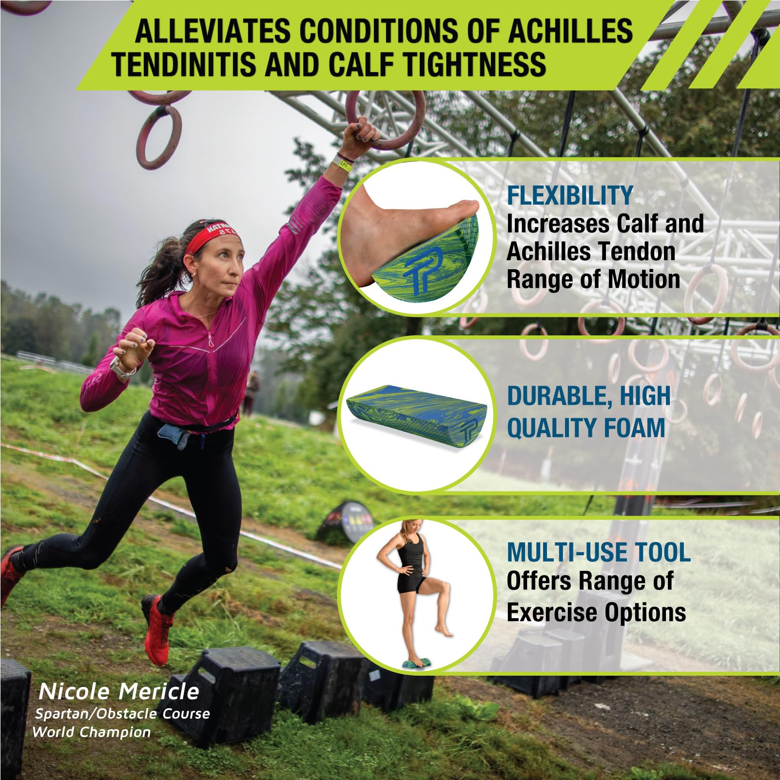 - Pro-Tec Calf Stretcher, Blue, Green, Fitness, Balance Memory Foam, Recovery Training, Textured Surface, Toning, Calf Flexibility, Achilles Tendon…