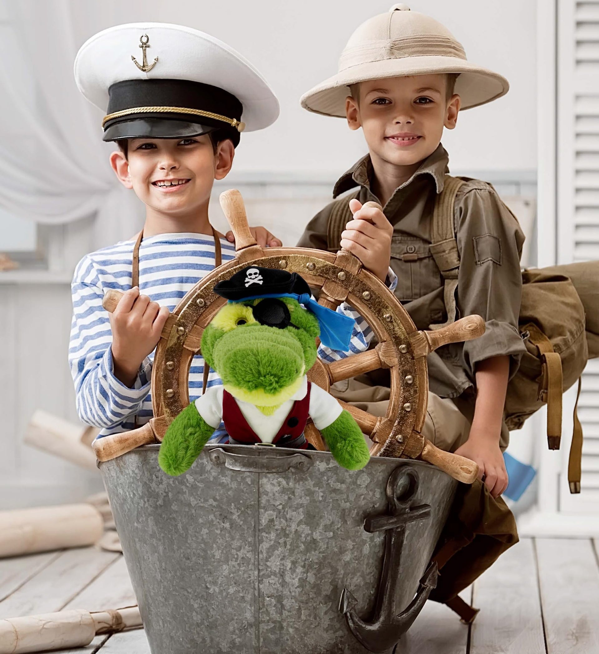 DolliBu Pirate Stuffed Animal Dress Up Costume Set - Pirate Shirt Belt Vest, Pants, Skull Pirate Hat, Eye Patch, Cute Teddy Bear Outfit - Large For 8…