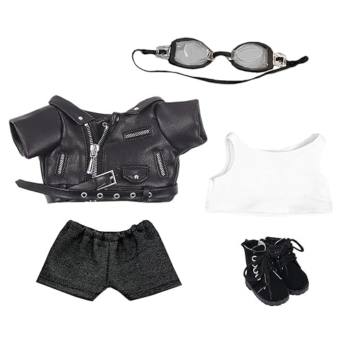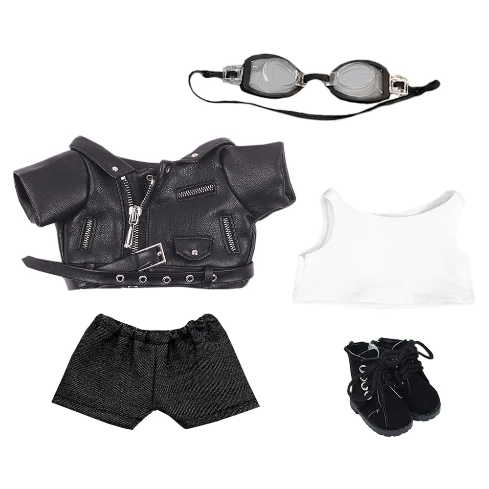 - niannyyhouse 20cm Plush Doll Clothes Leather Coat Jeans Glasses Vest Shoes Jacket Outfit 8in Dolls Dress Up (Black-20cm)