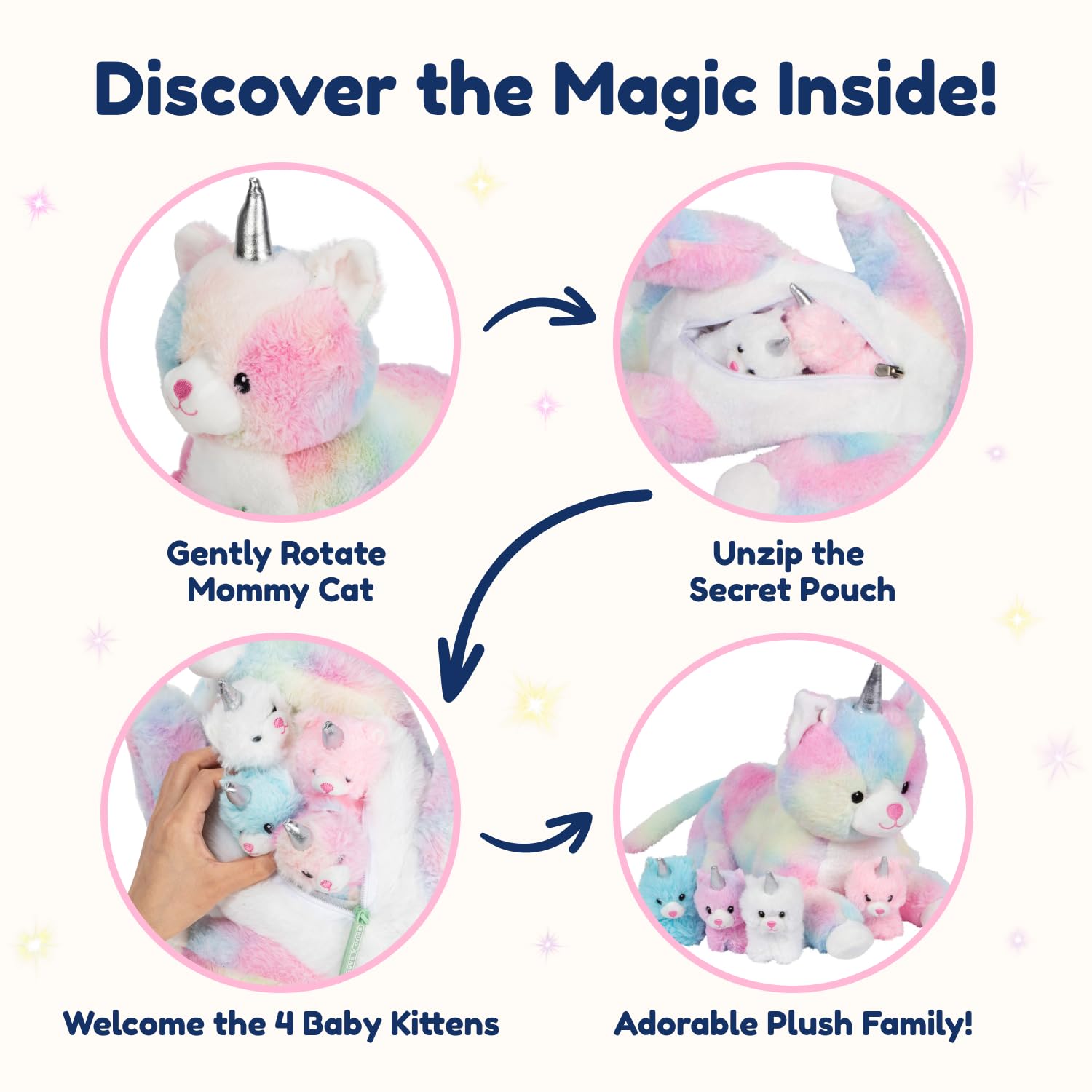 PixieCrush Unicorn Cat Plushie - Mommy Cat Unicorn with 4 Baby Kittens - Magical Pillow Plushies for Girls Ages 3-8 - Big Stuffed Animals - Ideal