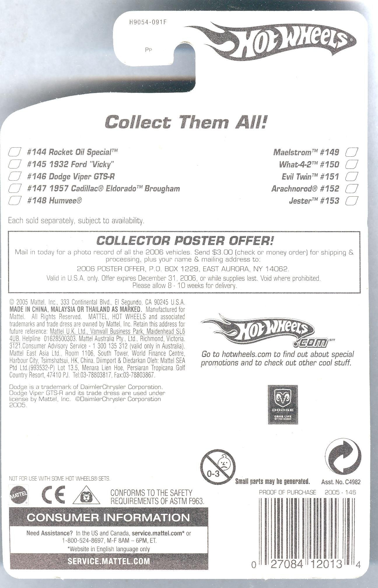 - Hot Wheels 2005-146 Dodge Viper GTS-R FTE 1:64 Scale Faster Than Ever BLACK