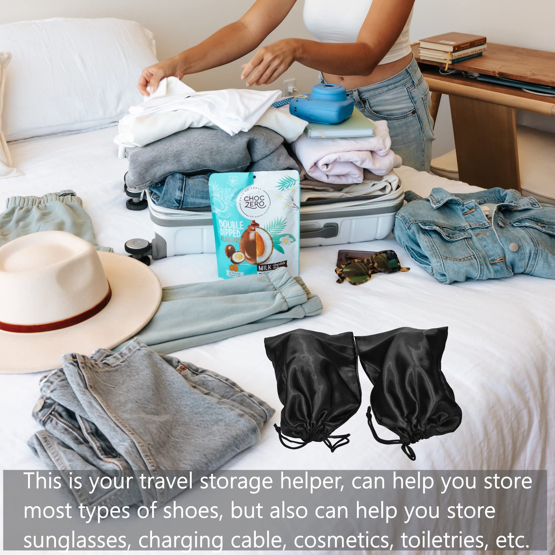 GONGKANGYUAN 4-Pack Satin Shoe Bags – Travel Drawstring Bags for Men & Women, Protect and Store Shoes