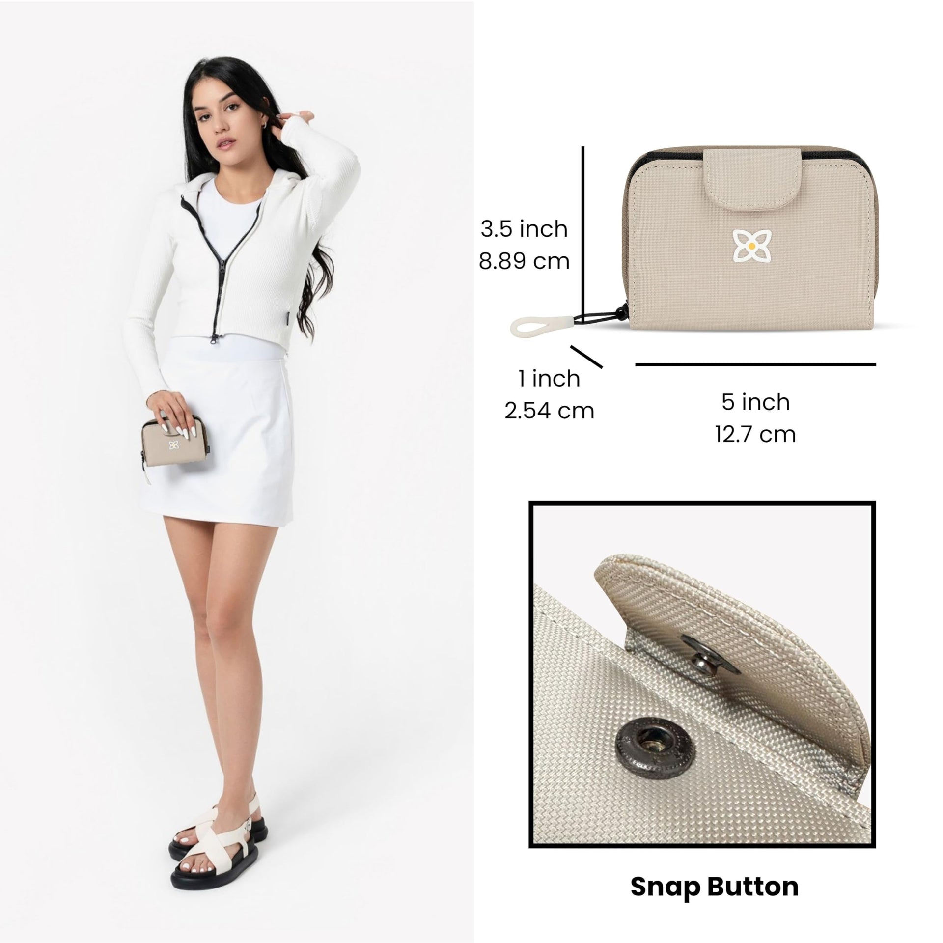 - FUNCTIONAL DESIGN - The Barcelona is your mini on-the-go wallet! This stylish yet compact wallet features one zippered compartment with three slip pockets, two clear ID card slots, four card slots, and one currency pocket. The wallet features with snap closure