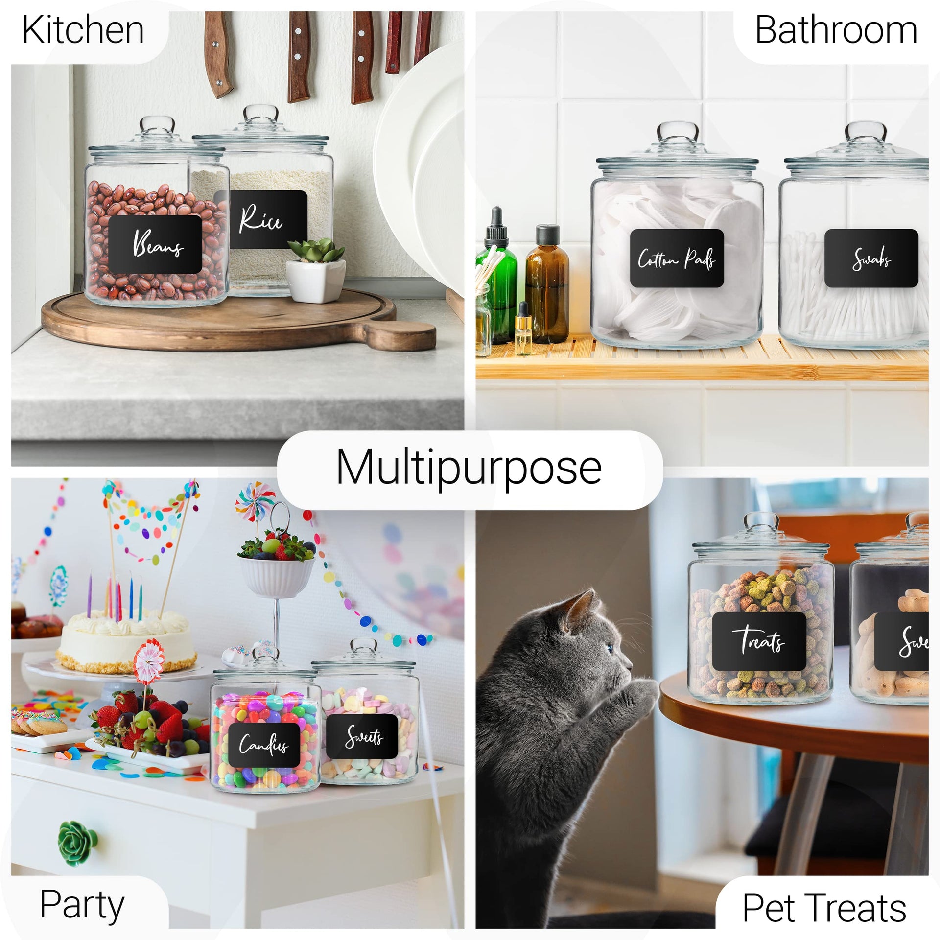 1 Gallon Glass Cookie Jars + Labels & Marker - Set of 2 Canister Sets for Kitchen Counter with Airtight Lids, Sugar Packet Holders Food Storage…