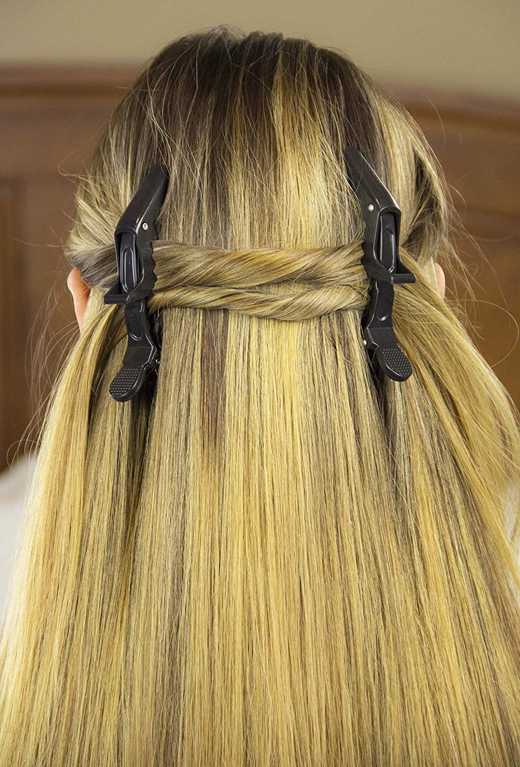 • ?stylist needs clips to section and separate their client's hair for many types of processing. These clips have a unique double-hinged design They have two springs that allow them to automatically adjust to hold any kind of hair regardless of amount, thickness, or type.
