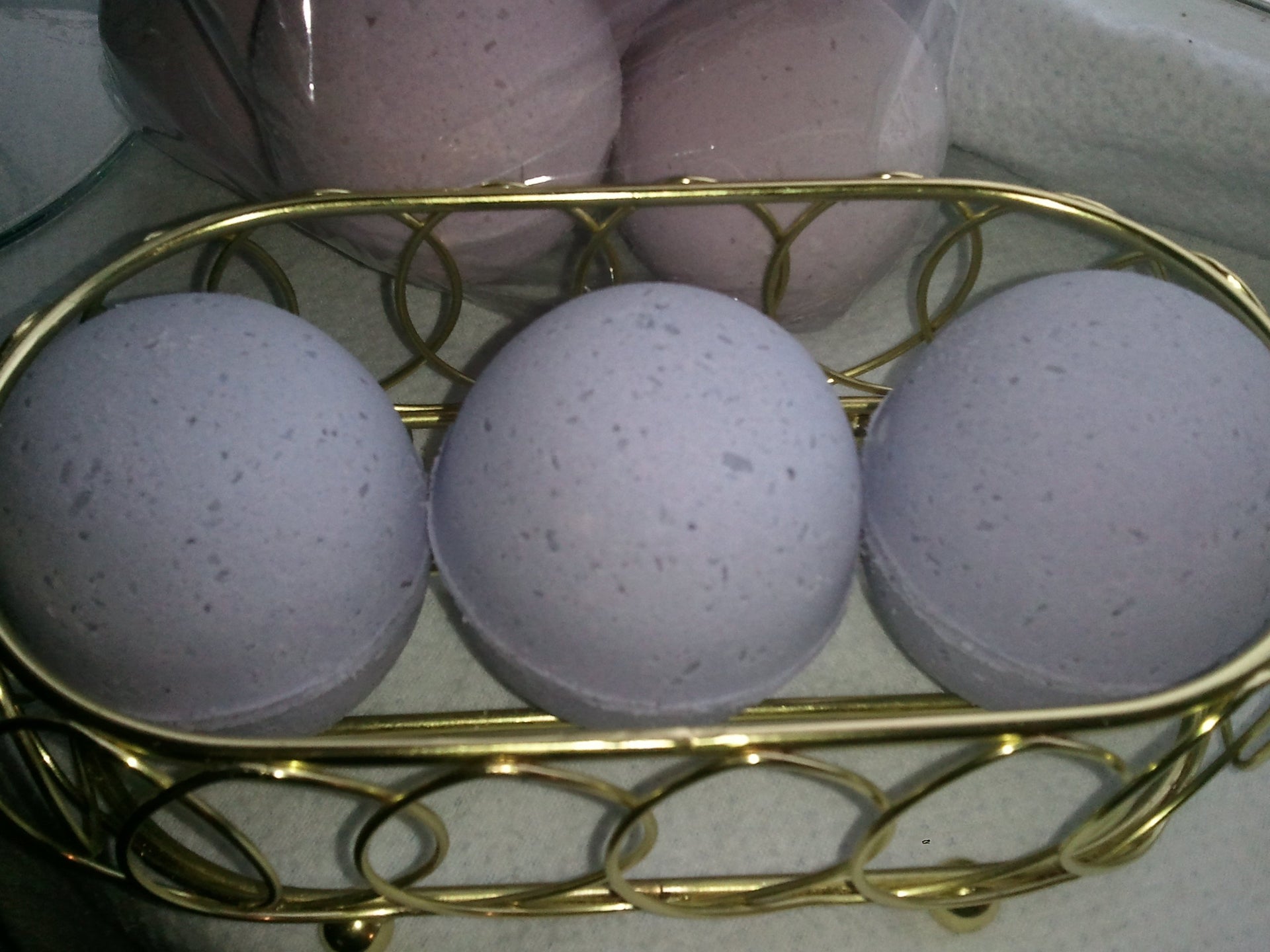 3 Large luxury bath bombs 5 oz each, individually wrapped. Spa Pure bath bombs are made with skin moisturizing ingredients including Shea, Mango, and Cocoa Butter, that moisturize and replenish your skin. Bathing with bath bombs is far better than lotion. The body's oils will lock in the skin's all-natural moisture are 100% pure and natural ingredients, many oils are Kosher too. Ultra moisturizing bath bomb fizzies, great for dry skin; all skin types. Receive 3 large Luxury bath bombs shaped like tennis balls, 5 Oz each, individually wrapped in a clear cello bag with a hang tag and ribbon.