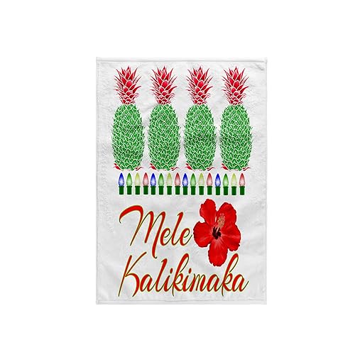 Holiday colored pineapples and Hawaiian Mele Kalikimaka for Christmas Towel is great to use in the kitchen, bathroom or gym. This 15 by 22 inch, hand/sports towel allows you to customize your room with a special design or color. Great for drying dishes, hands and faces. Suitable to put in any sports bag. Image will not fade after washing. Machine wash, tumble dry low, do not bleach. Towel will regain its fullness after the first washing. Made of 63% polyester (microfiber) /37% cotton (velour terry cloth). Image printed on microfiber side/ terry cloth side blank.