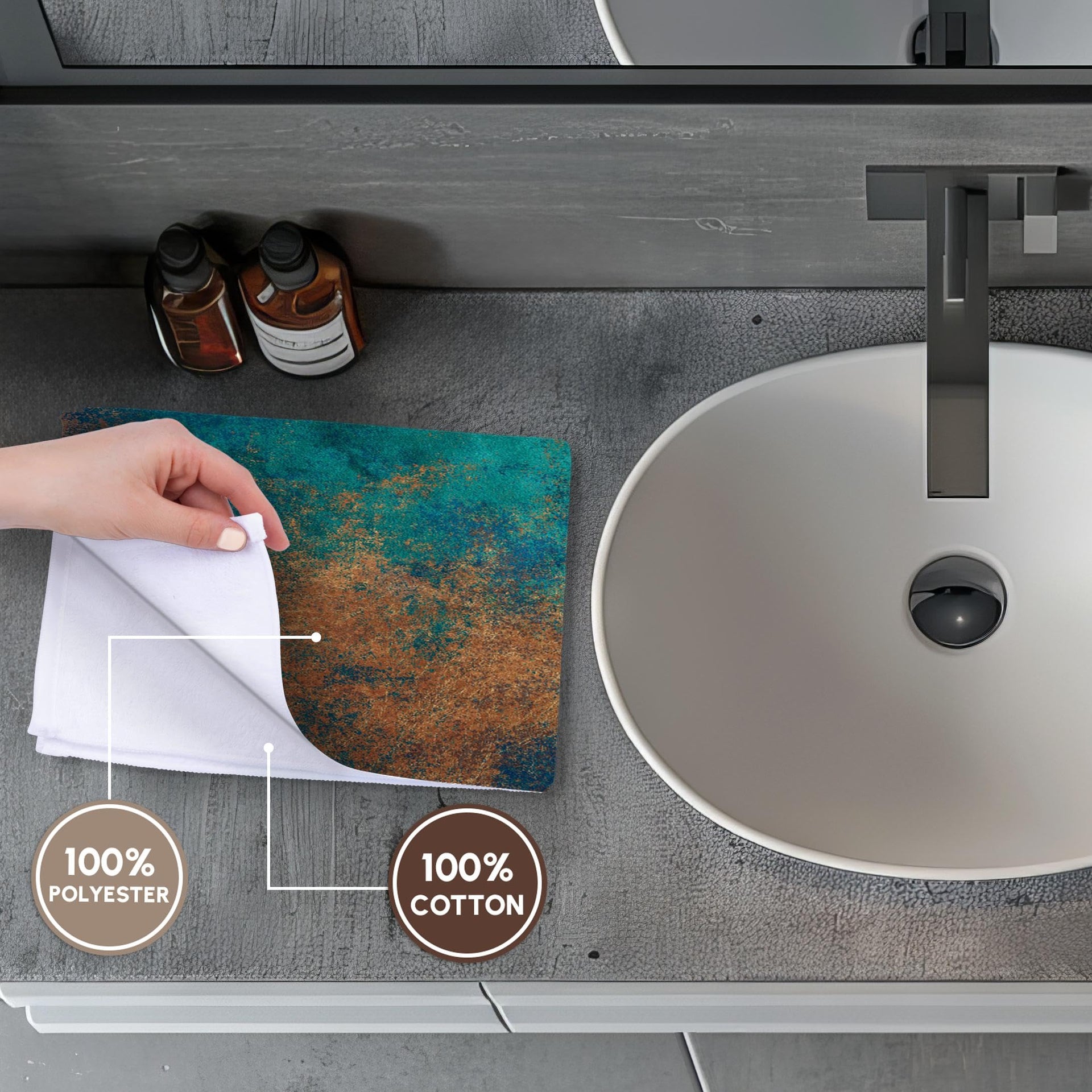 3dRose Towel, Teal and Image of Copper Abstract, 15x22 Hand Towel
