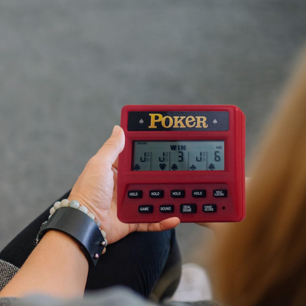 • HANDHELD VIDEO GAMES - Thanks to the deluxe handheld games for adults, "what happens in Vegas" can now happen wherever you are. This small games machine is pocket-size so you can play five of the most exciting classic poker games anytime and anywhere.