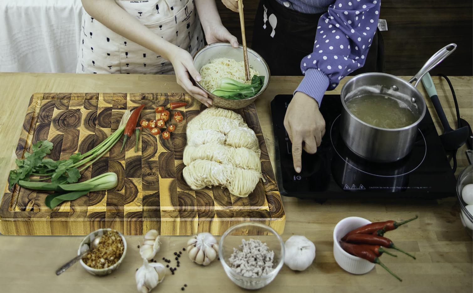 • ✅EXTRA LARGE AND THICK FOR ALL CUTTING NEEDS: The cutting board measures 17x13x1.5 inches. It is big, thick, sturdy with End Grain Wood. Could be used as cutting, chopping, carving board, heavy duty butcher block or serving tray. With proper care, this cutting board will outlast most items in your kitchen.