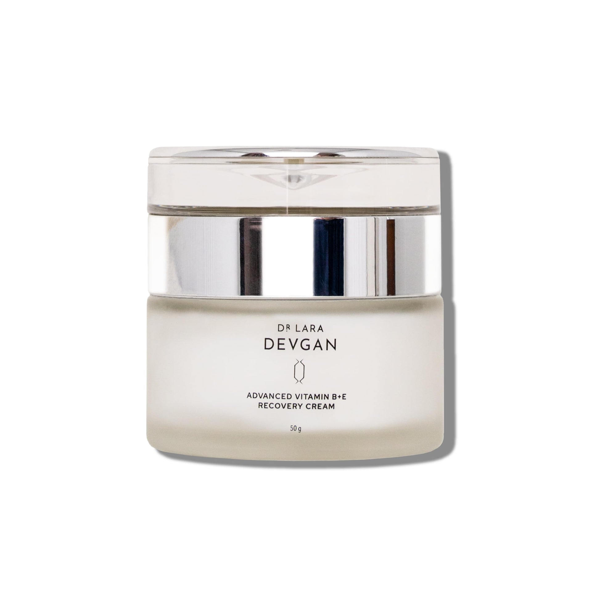 A lightweight, nourishing moisturizer formulated with Vitamin B, Vitamin E, and Hyaluronic Acid to hydrate, soothe, and support the skin barrier. Ideal for daily use to promote a smooth, balanced, and revitalized complexion. The Advanced Vitamin B+E Recovery Cream by Dr. Devgan Scientific Beauty is a lightweight yet deeply nourishing moisturizer designed to hydrate and restore skin’s vitality. Featuring Vitamin B to soothe, Vitamin E to protect, and hyaluronic acid to retain moisture, this cream delivers lasting hydration while reinforcing the skin’s natural barrier. Suitable for all skin types, this recovery cream helps improve texture, reduce redness, and leaves skin feeling soft, smooth, and resilient.