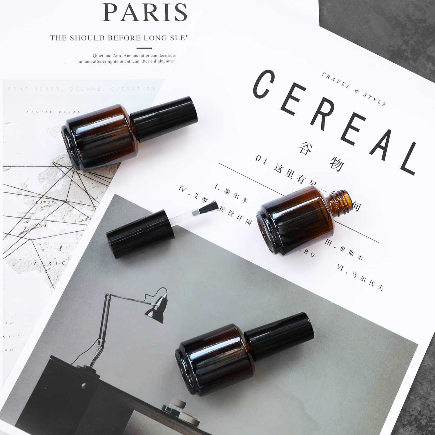 Agidea 6PCS Empty Nail Polish Bottles Amber 15ML/0.5 oz, Empty Dark Glass Refillable Nail Polish Bottles with Brush & Mixing Balls & Funnels,Brown