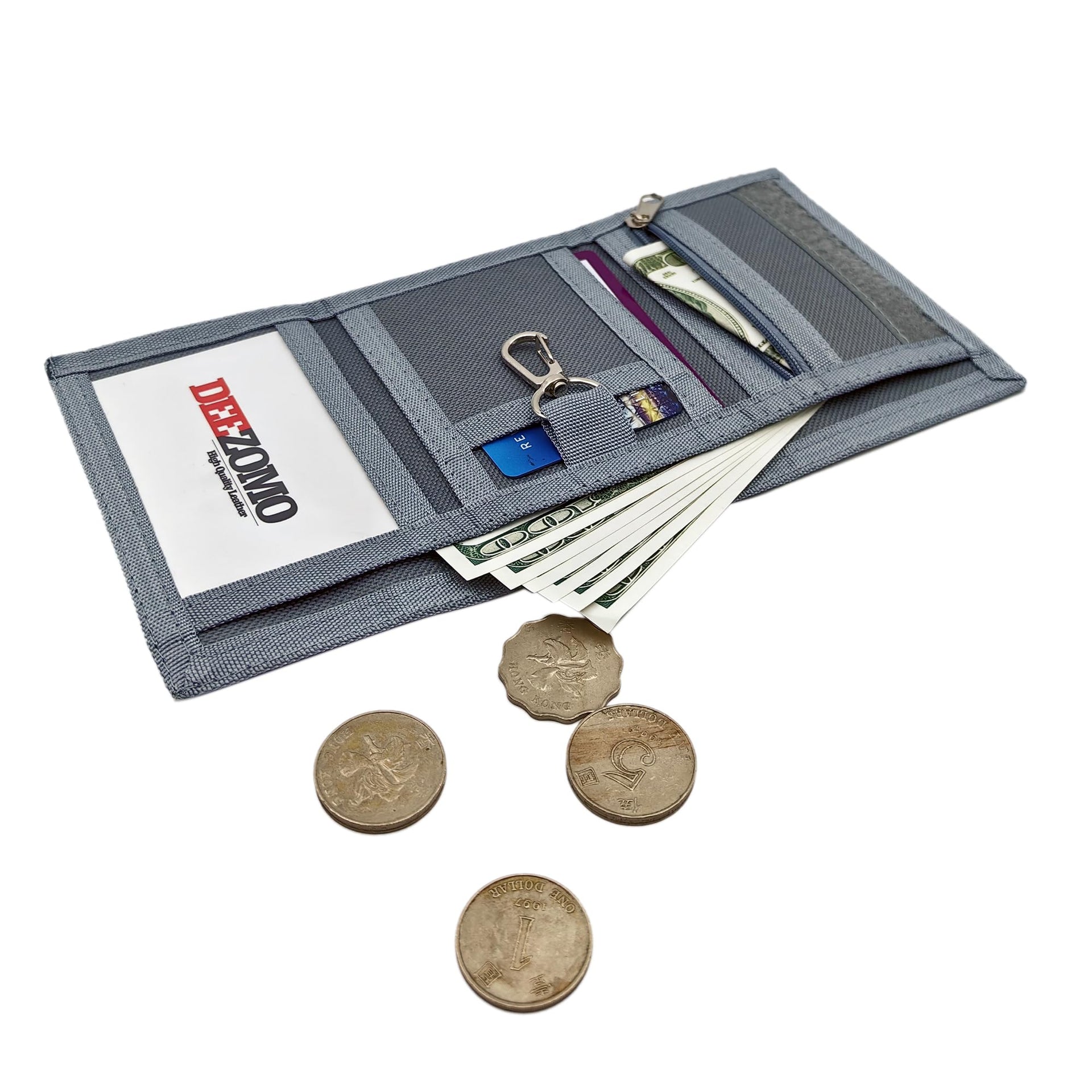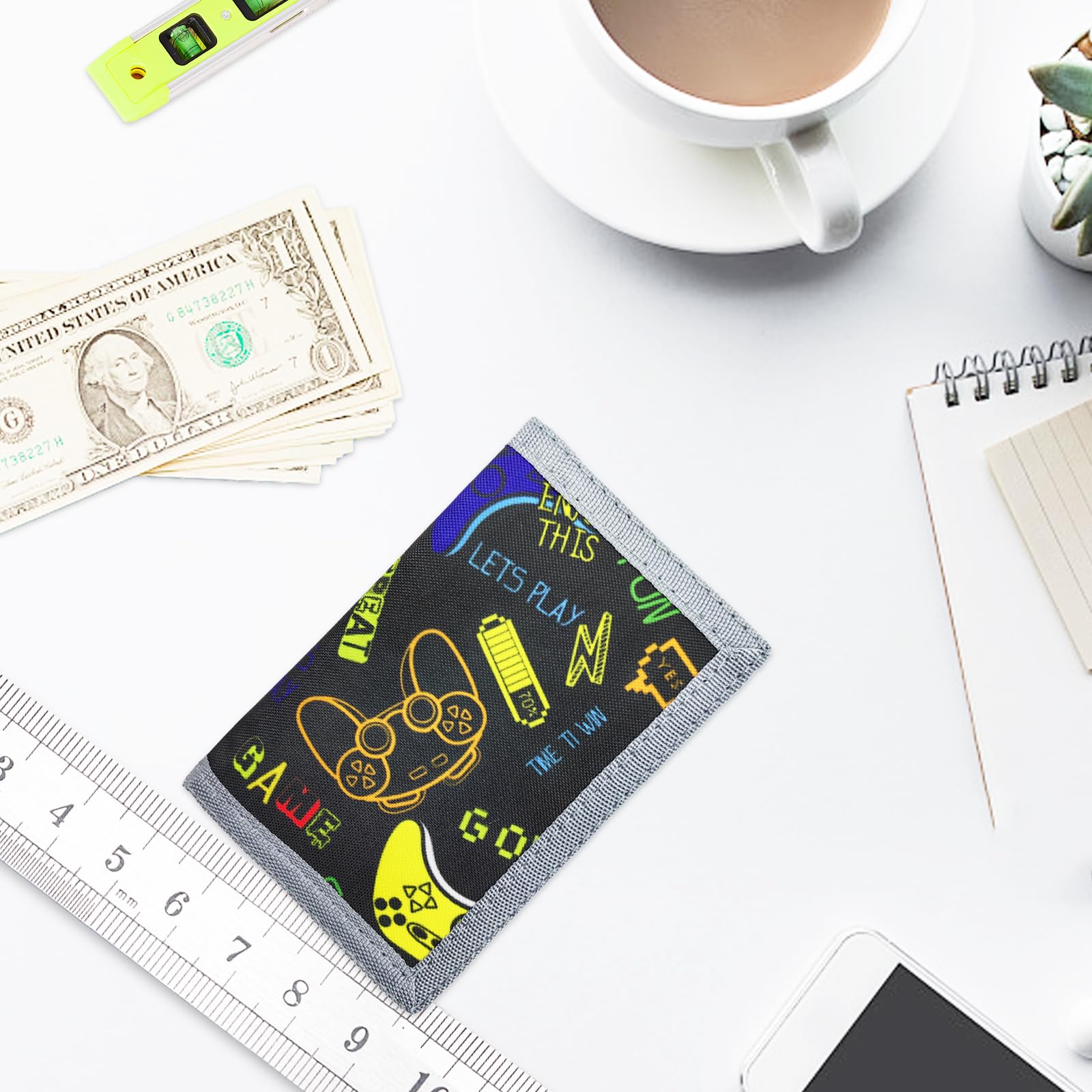 AI-DEE RFID Trifold Canvas Wallet for Kids – Outdoor Sports Front Pocket Wallet with Magic Sticker, Triangle P