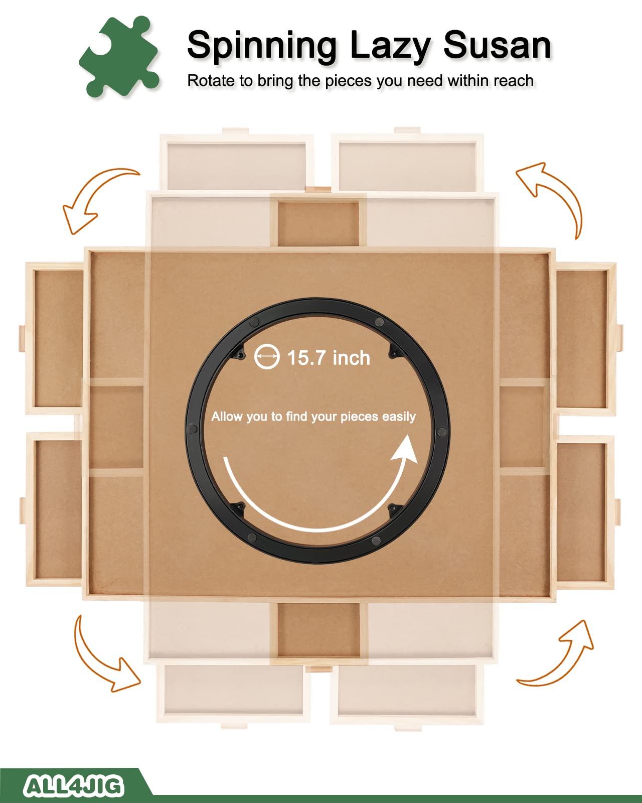 ALL4JIG 1500 Piece Rotating Puzzle Board with 6 Drawers & Cover, 25"x34" Portable Wooden Jigsaw Table for Adults, Lazy Susan Puzzle Gift