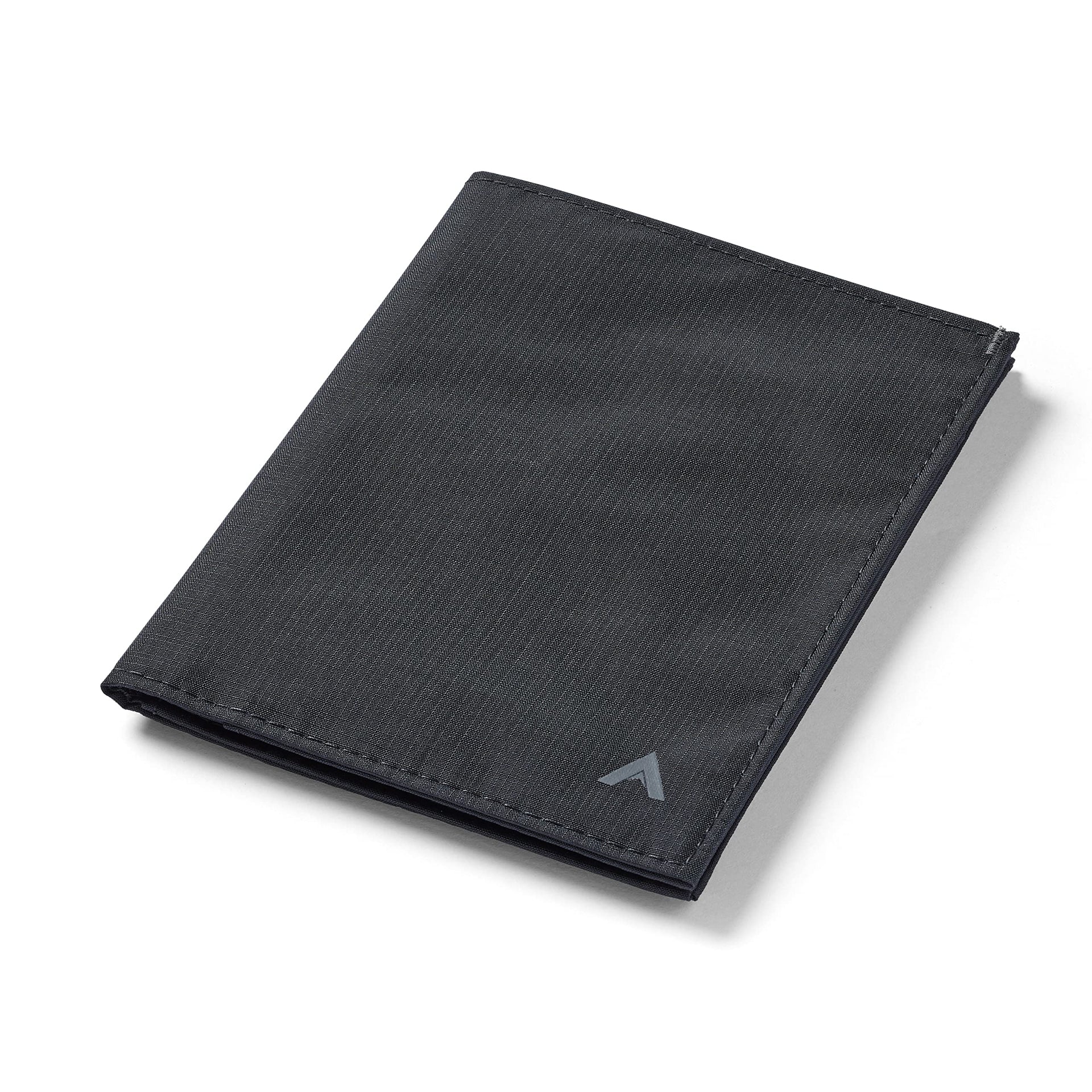 Allett Travel Wallet, Jet Black | Nylon, Thin Bifold, RFID Blocking, Minimalistic, Front Pocket | Holds Up To 10 Cards & Passport | For Men & Women