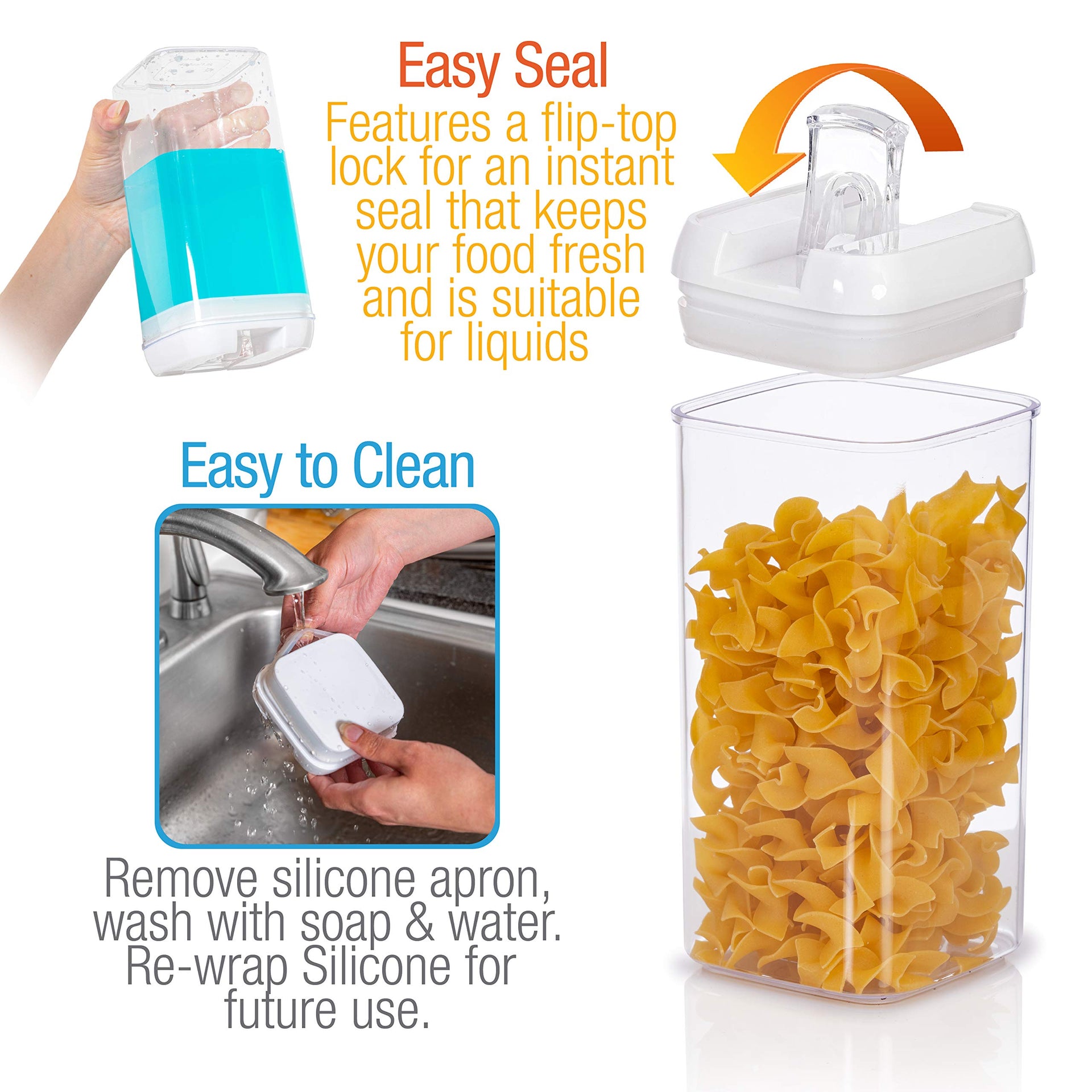 Alphx Innovations Set of 7 Airtight Food Storage Containers - Pantry Organizer Bins, BPA Free Plastic Containers plus Dry Erase Marker and Labels…
