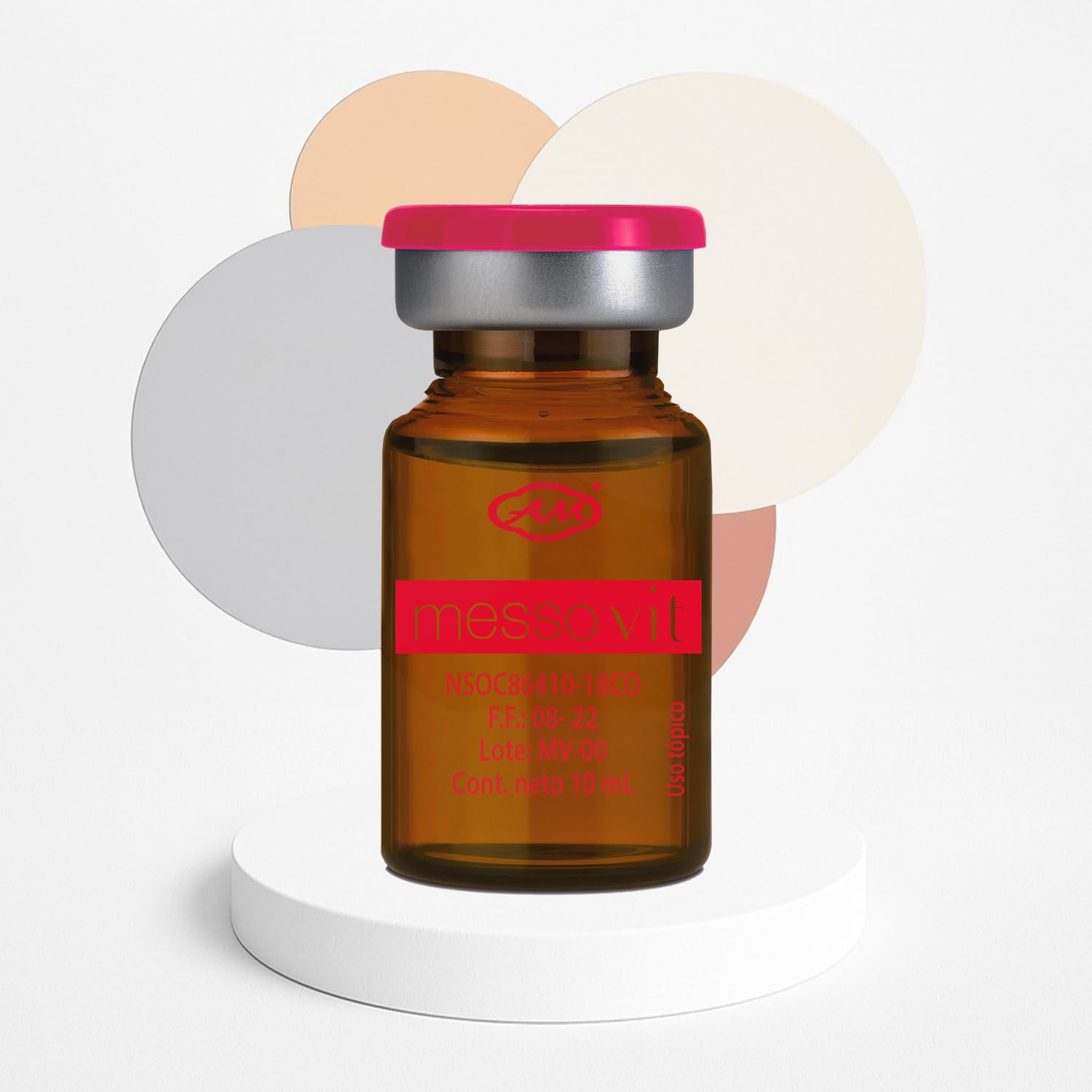 AM ARMESSO MessoVit is a professional cosmetic serum formulated to visibly energize and revitalize the skin through a unique combination of amino acids, vitamins, DMAE, and trace elements. Designed to support the appearance of healthier skin tone and texture, this sterile topical solution provides essential nutrients that contribute to a refreshed and balanced look. Each box includes 5 sterile vials (10ml / 0.338 fl. oz each). Ideal for facial and body applications, including the buttocks, MessoVit may be used alone or as part of a multi-step rejuvenating protocol with other AM ARMESSO products like Hyaluronic Acid and Nutritivo Facial Plus. For professional external use only. This is a cosmetic product. Not intended to diagnose, treat, cure, or prevent any disease.