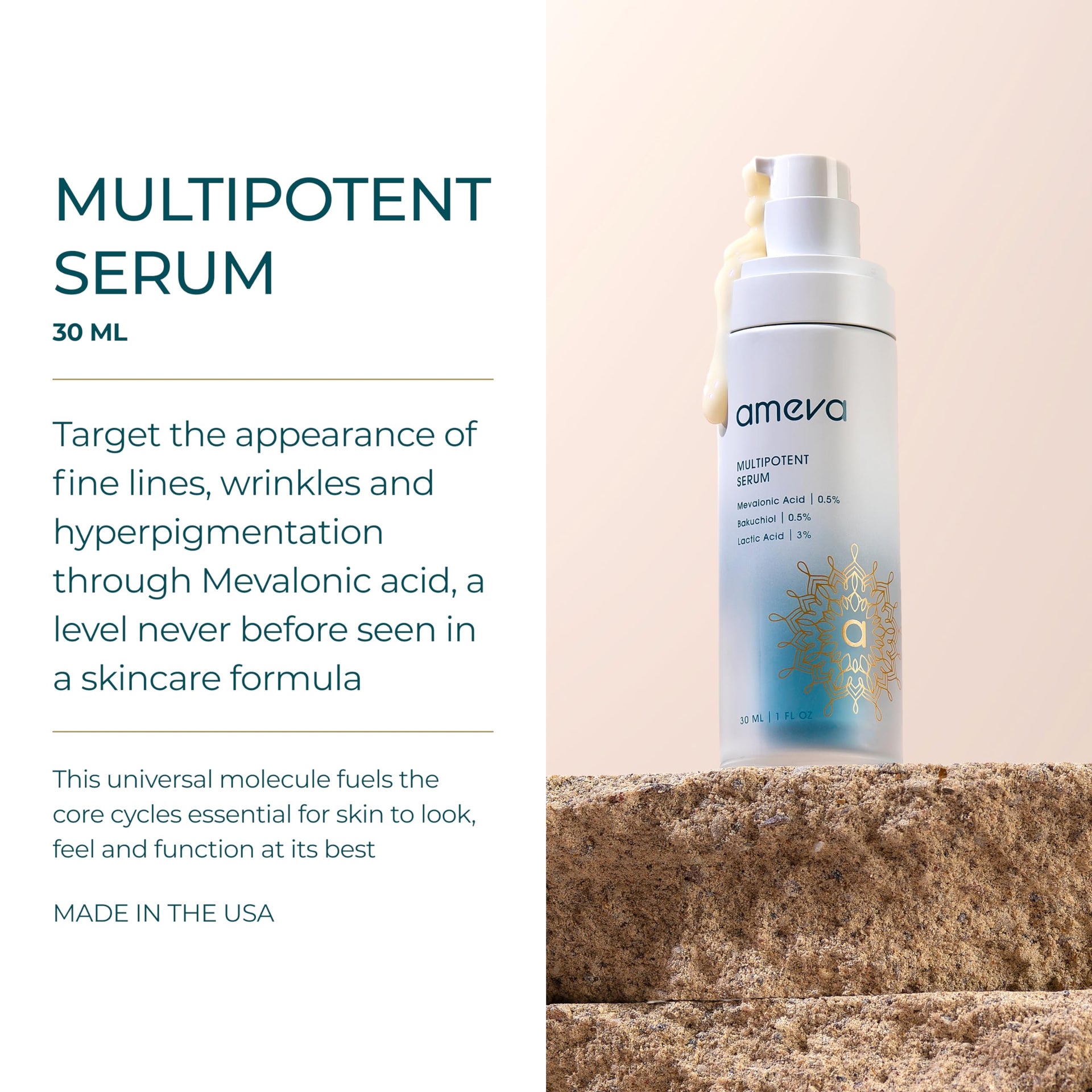 Experience the beauty secret of AMEVA Mevalonic Acid Serum enriched with Bakuchiol. This plant-based formula combines Mevalonic Acid and Bakuchiol for transformative results. Bakuchiol, a natural alternative to retinol, improves texture, reduces wrinkles, and enhances collagen production. Say goodbye to dull skin and hello to a vibrant complexion. Formulated with 100% natural, vegan ingredients, our serum is free of silicones, preservatives, and petrochemicals. Enjoy a clean and eco-friendly skincare solution that promotes a healthy and radiant appearance. Unleash nature's power with AMEVA. Reveal your true beauty with our innovative Mevalonic Acid Serum enriched with Bakuchiol.