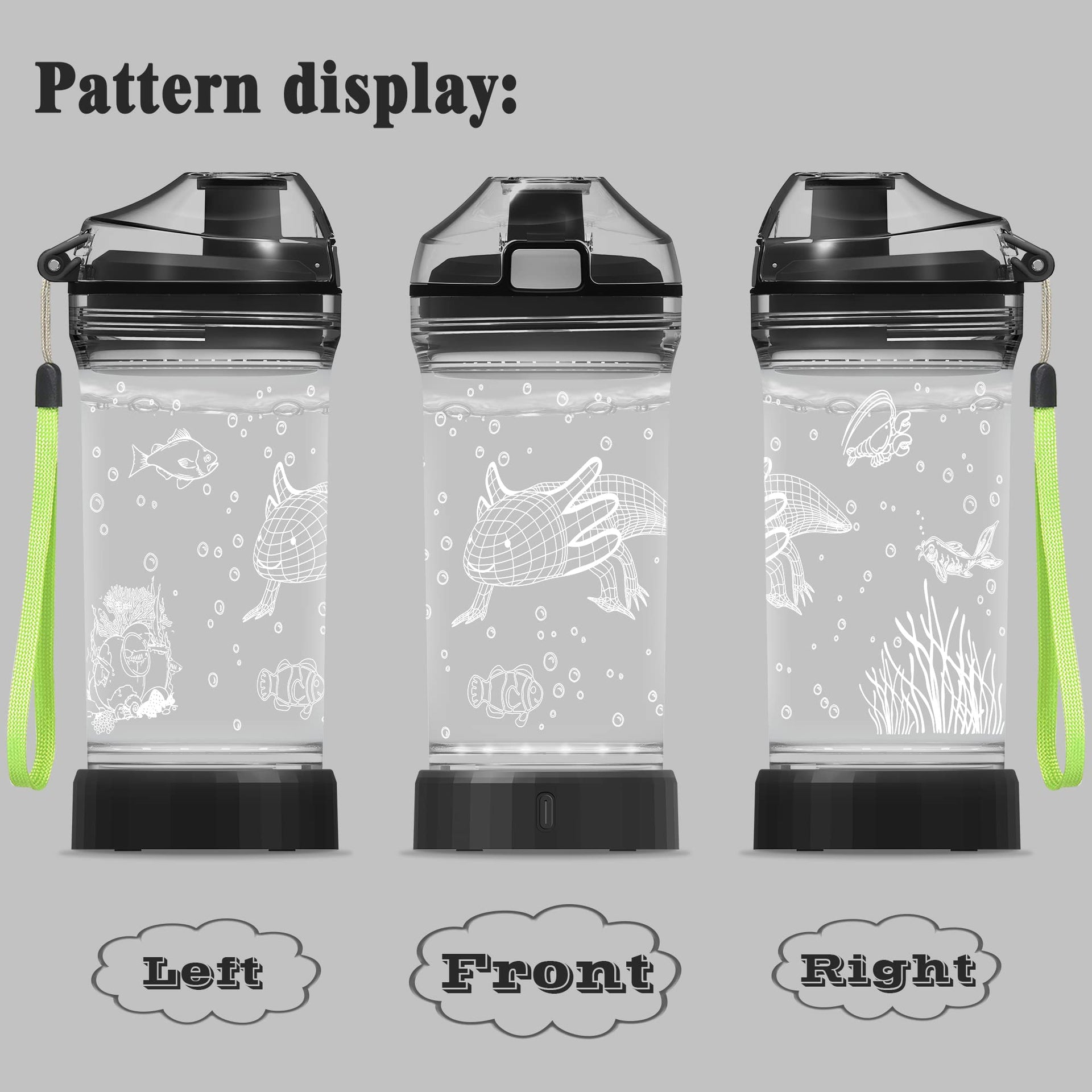 Ammonite Axolotl Water Bottle with 3D Glowing LED Light - 14 OZ Tritan BPA Free - Creative Ideal Travel Cup Gift for School Kid Boy Child Gamer