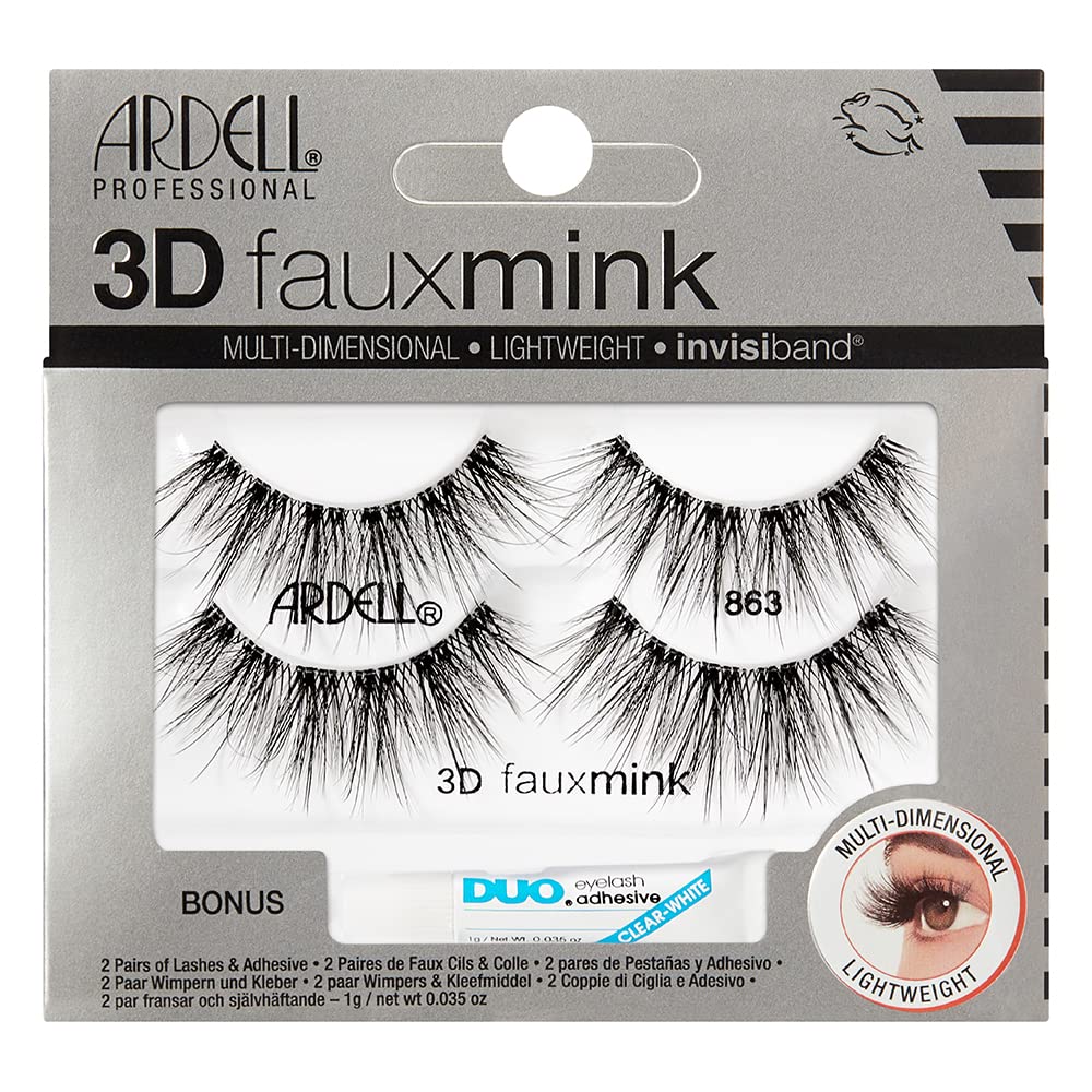 • Beginner and Wallet-Friendly Set: Comes with 2 pairs of Ardell 3D Faux Mink 863 and 1 DUO Pipette White Lash Adhesive; ensures you have an extra pair; no need to buy a separate glue to see which one will work the best; perfect for DIY and lash beginners
