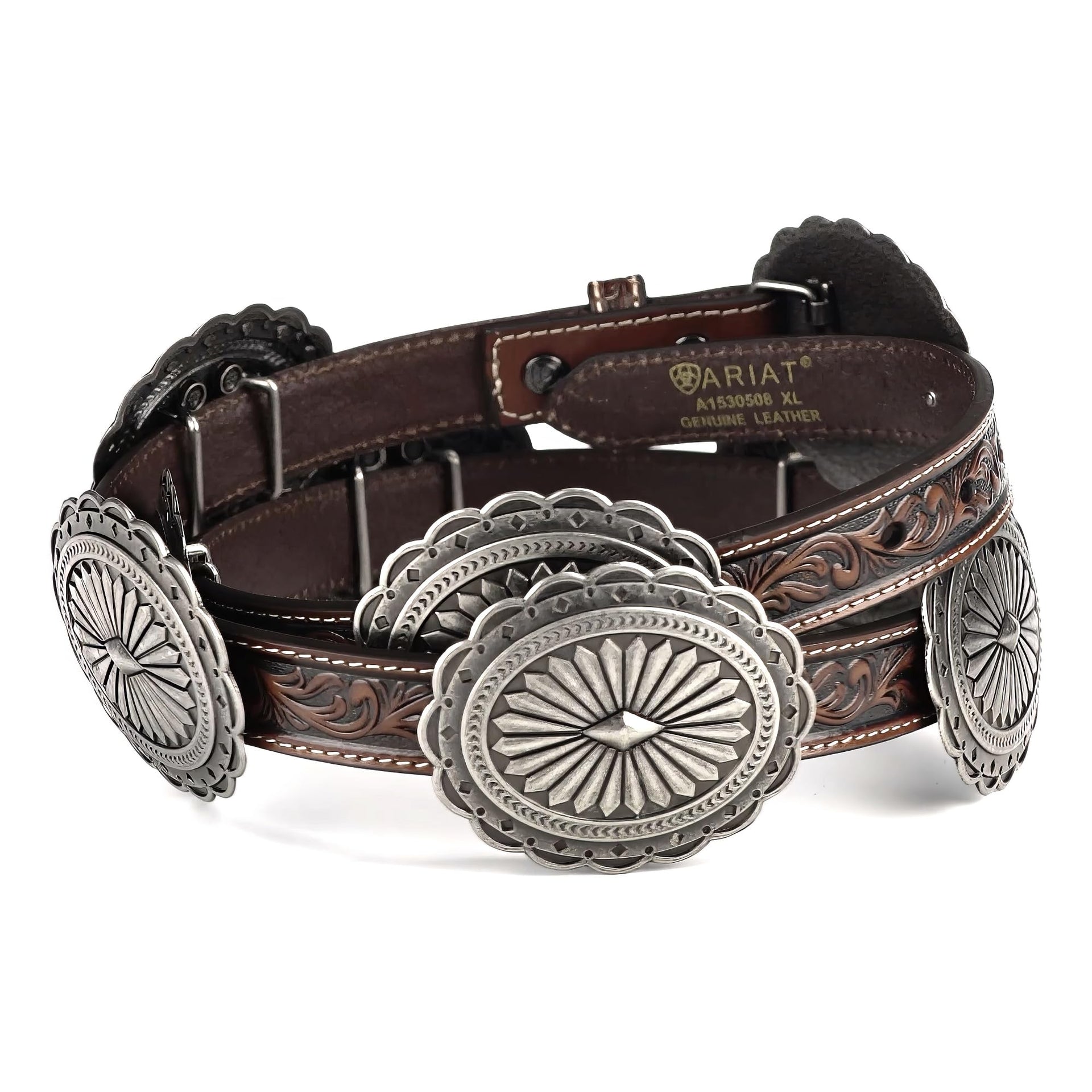 ARIAT Women's Tooled Leather Concho Belt, Tan, X-Large